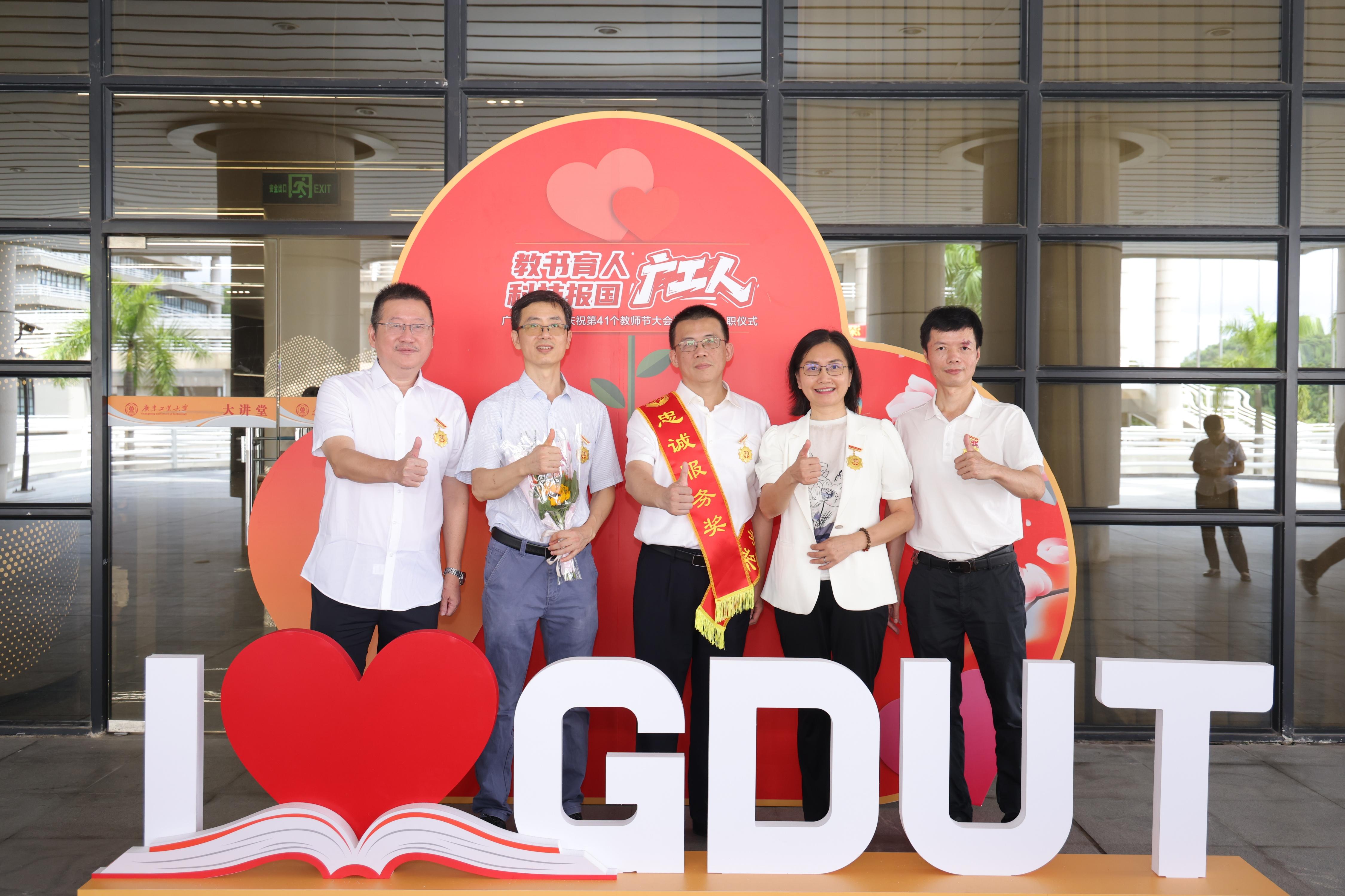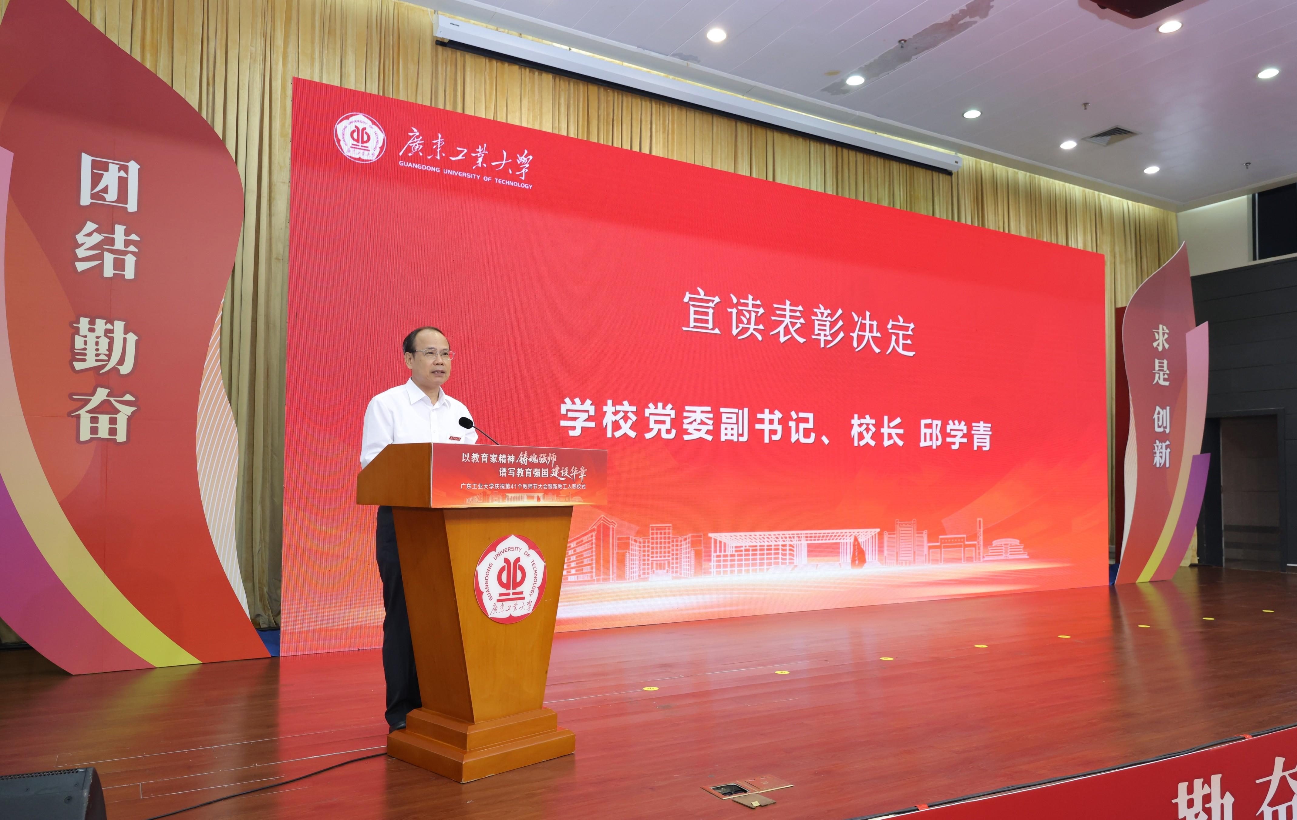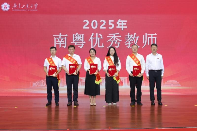 9月10日上午,广工庆祝第41个教师节大会暨2025年新教工入职仪式在大学城校区大讲堂三楼报告厅举行,6位“南粤优秀教师”和205位“忠诚服务奖”教职工荣获表彰,289名新教工庄重宣誓成为人民教师。