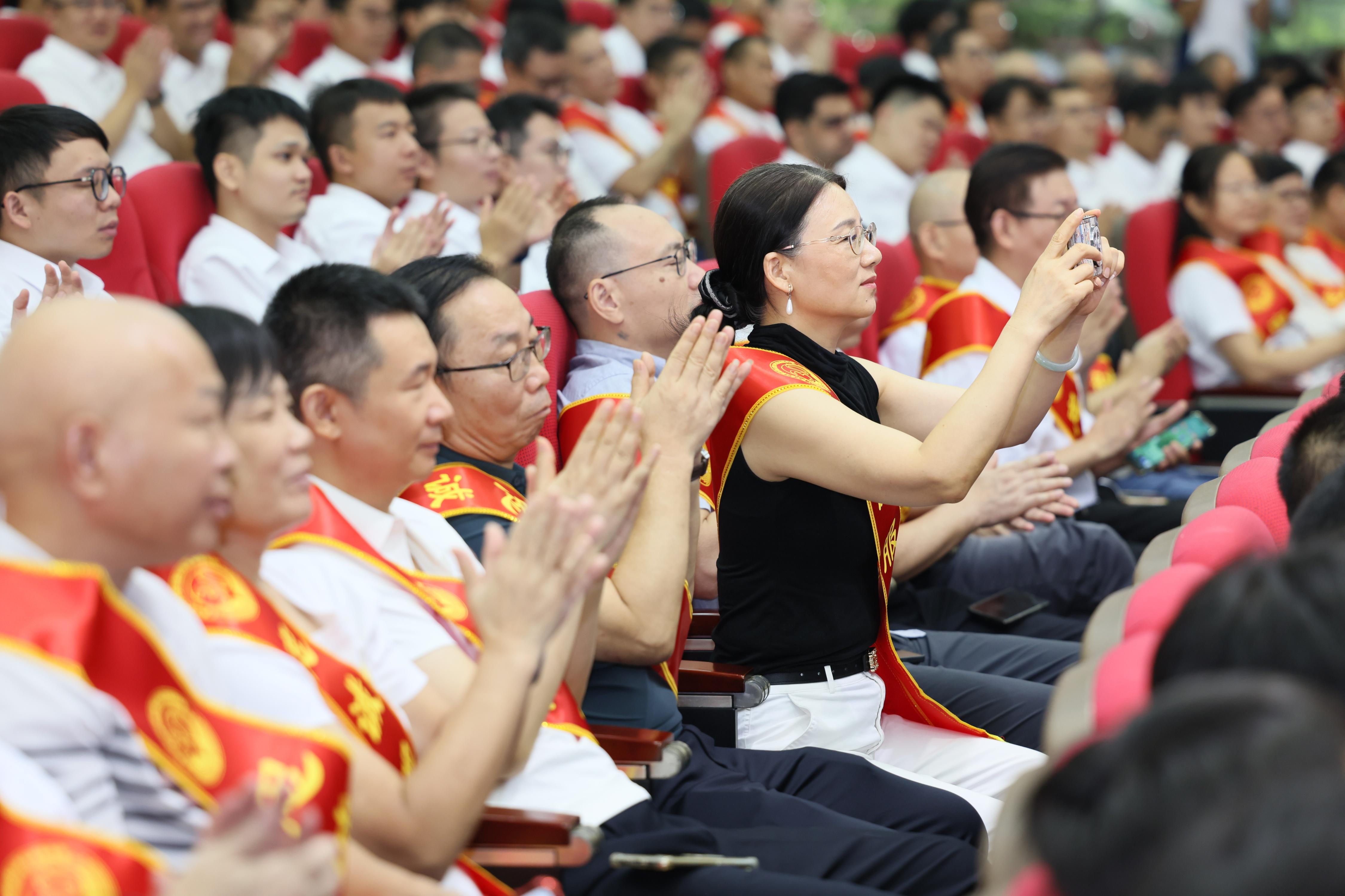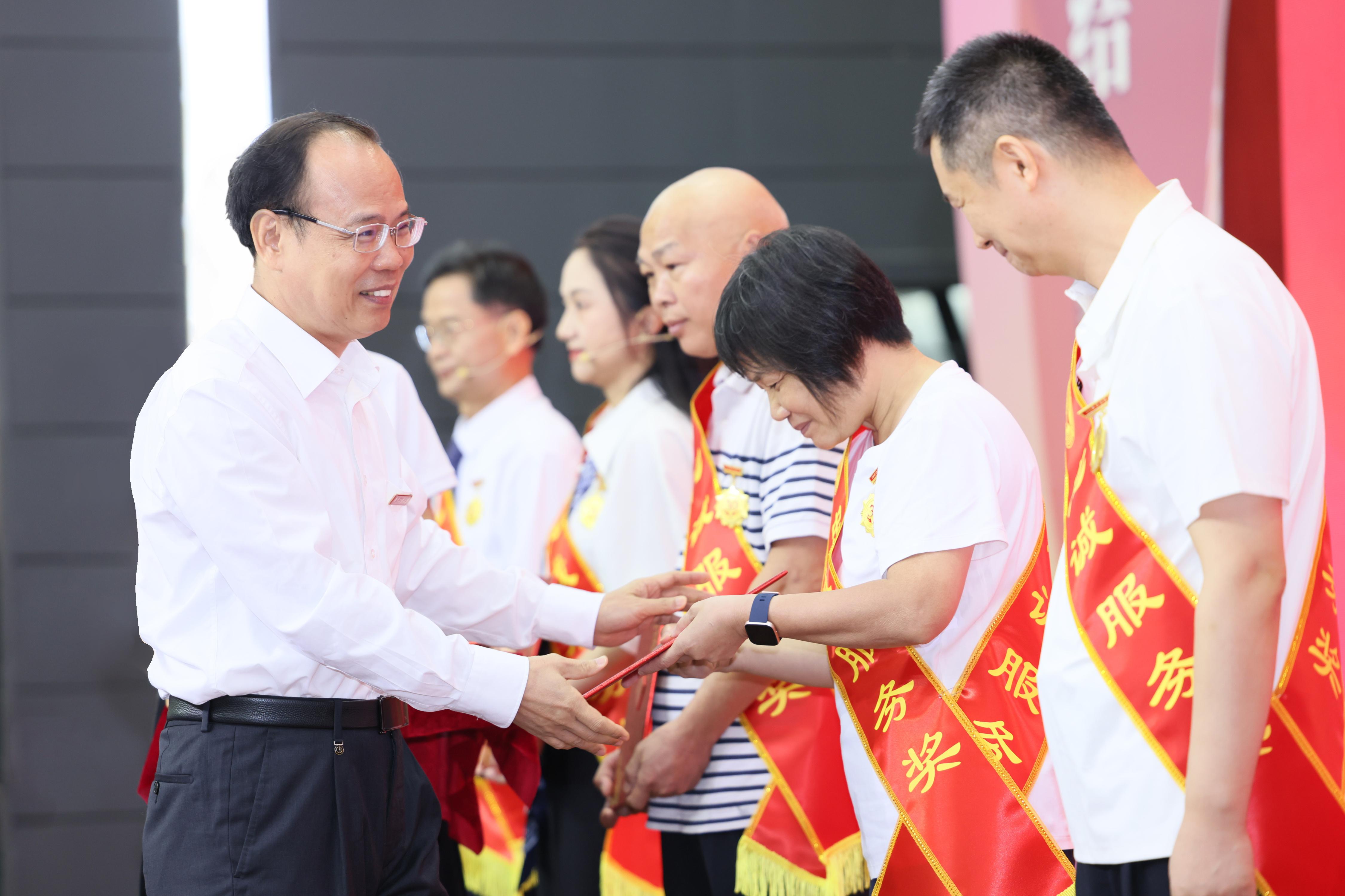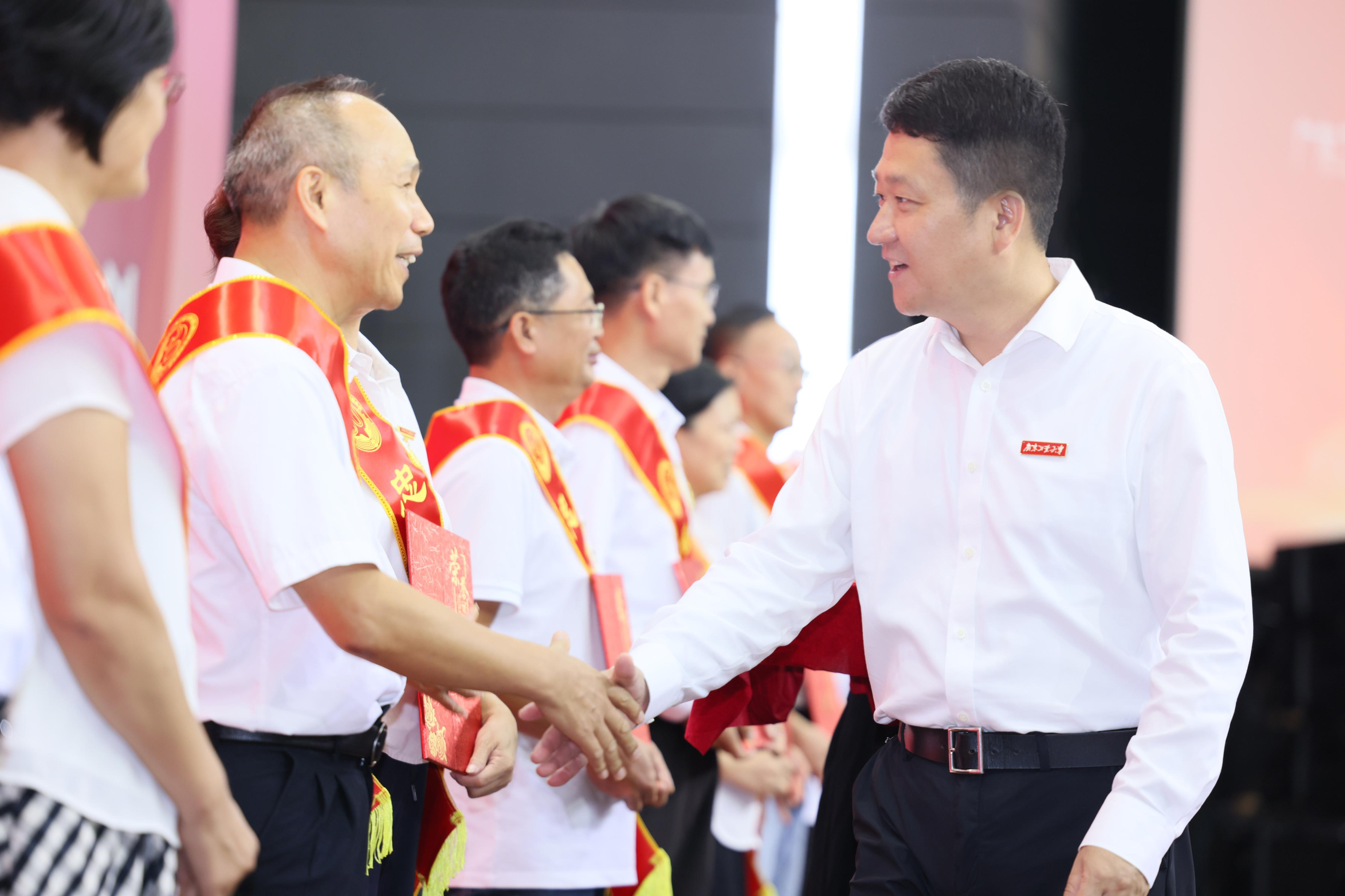 在热烈的掌声中,全体校领导为“南粤优秀教师”和“忠诚服务奖”教职工颁发荣誉证书,传承教育家精神,传递榜样力量。