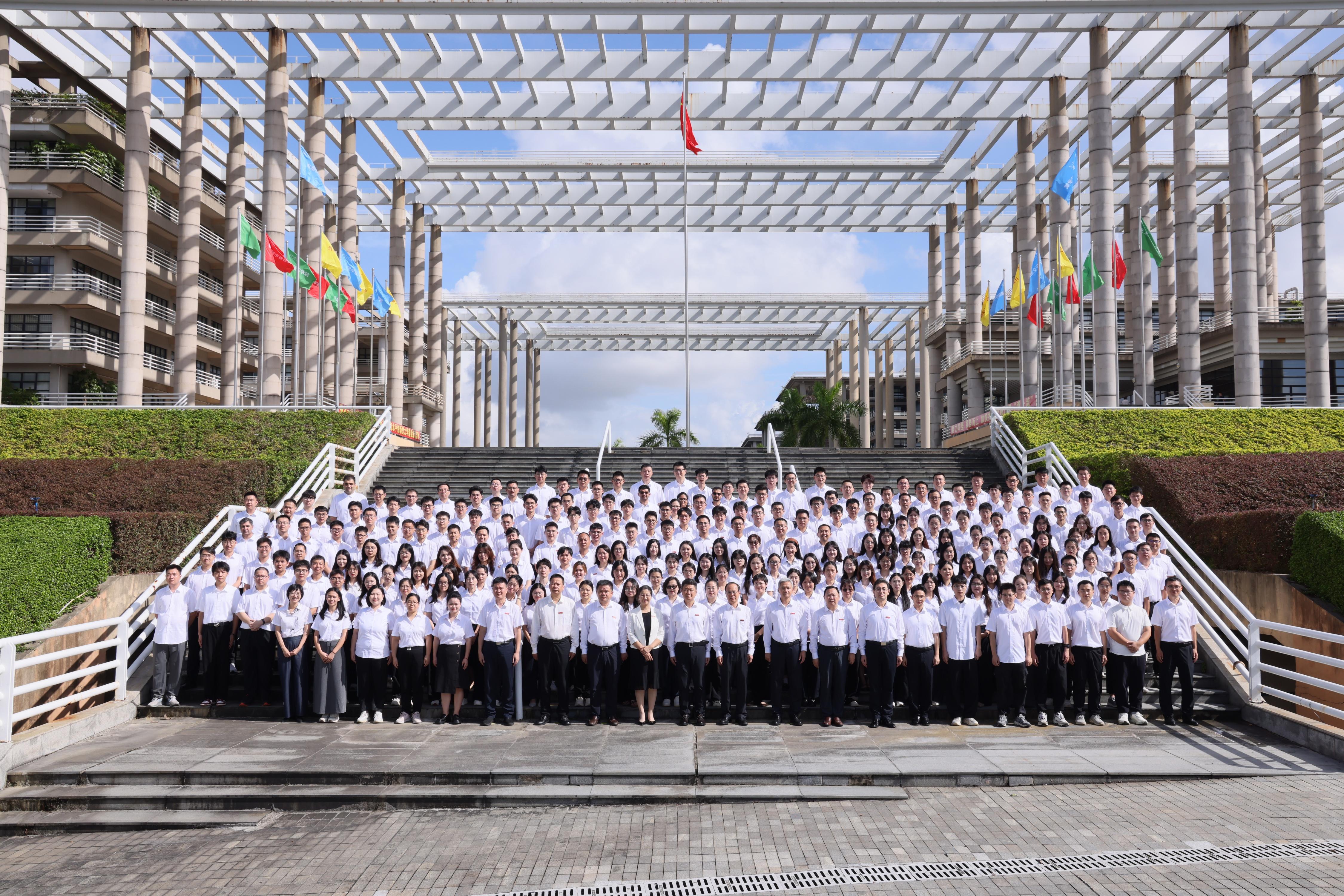 学校党委书记白建刚,党委副书记、校长邱学青,党委副书记朱蔚蔚、陈卓武,党委常委、副校长杜承铭,副校长余林,党委常委、副校长鲁仁全,党委常委、纪委书记、广东省监委驻开云网页版登录入口监察专员庞建国,党委常委、宣传部部长张育广出席典礼。校党委教师工作委员会成员、各二级党组织书记、获奖教师、离退休教师代表及新入职教工参加大会。揭阳校区教师代表在分会场参会。大会由朱蔚蔚主持。