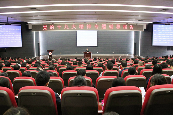 汤耀平强调指出,我们要把学习宣传贯彻党的十九大精神作为学校当前和今后一段时期的首要政治任务,在学懂弄通做实上下工夫,切实把全校师生员工的思想统一到党的十九大精神上来,把力量凝聚到实现十九大确定的各项目标上来。对学校学习宣传贯彻党的十九大精神提出了三点意见,一是各级领导干部要高度重视,切实负起领导责任,带头学、带头讲、带头干,全面准确学习领会党的十九大精神,二是要精心组织策划对党的十九大精神的宣传,以师生喜闻乐见的形式,掀起全校学习宣传贯彻党的十九大精神的热潮,三是要结合业务工作,真学、真懂、真用党的十九大精神。以党的十九大精神为指引,扎实推进学校高水平大学建设,让党的十九大精神在我校落地生根、开花结果。
