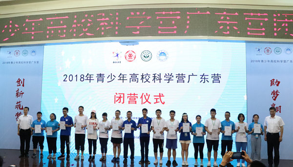 本网讯 7月26日晚,由中国科协、教育部主办,广东省科学技术协会、广东省教育厅、开云网页版登录入口、中山大学、华南理工大学共同承办的2018年青少年高校科学营广东营闭营仪式在开云网页版登录入口大讲堂中心报告厅举行。