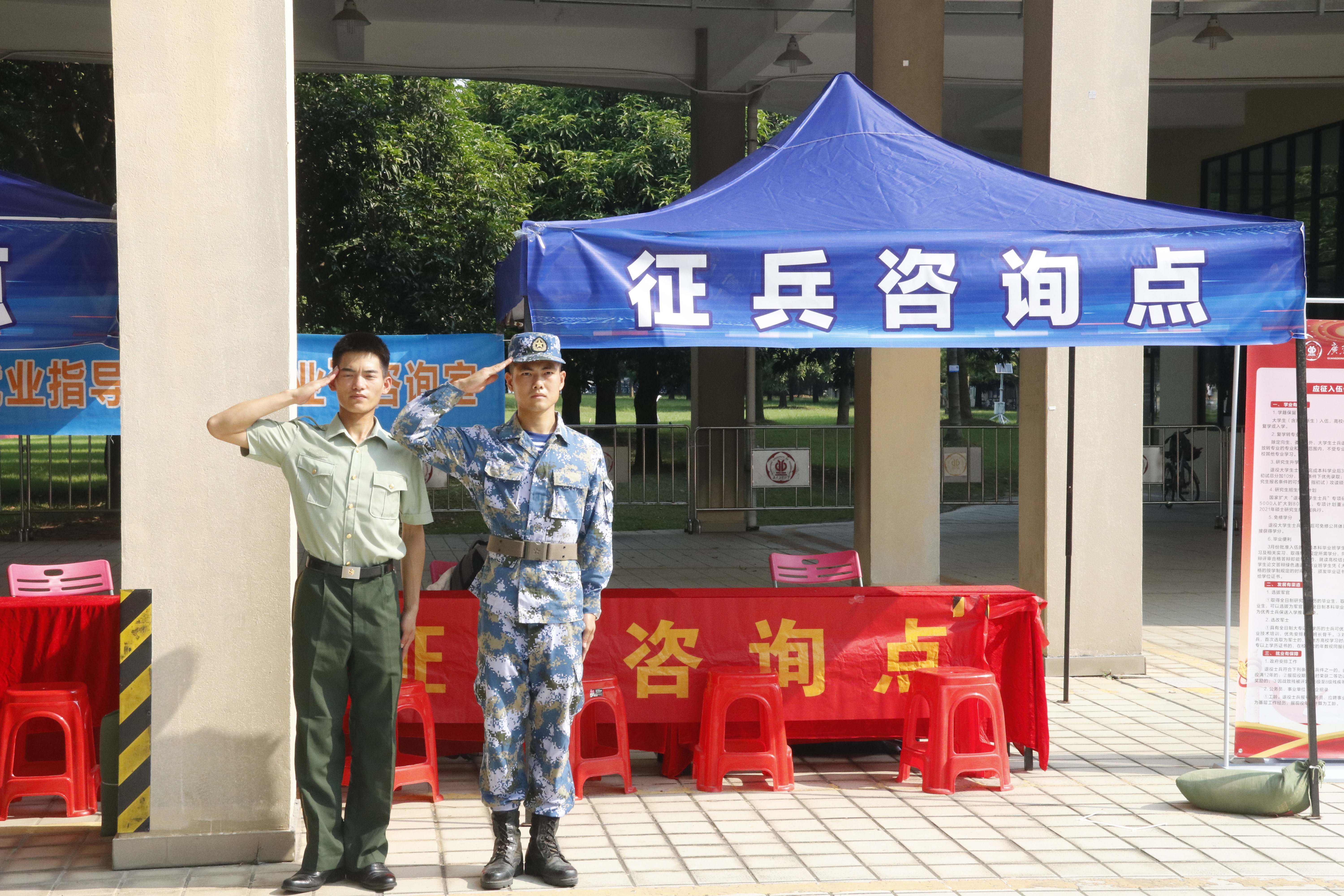 招聘会现场一如既往设置了就业咨询点和参军入伍咨询专区,提供个性化专业化的就业指导。组织就业创业骨干导师、军事教育科老师和退伍学生为同学们提供政策咨询、就业创业指导、简历诊断、参军入伍优惠政策咨询等服务,协助毕业生明确职业方向,引导科学择业、积极就业,提高求职应聘能力。