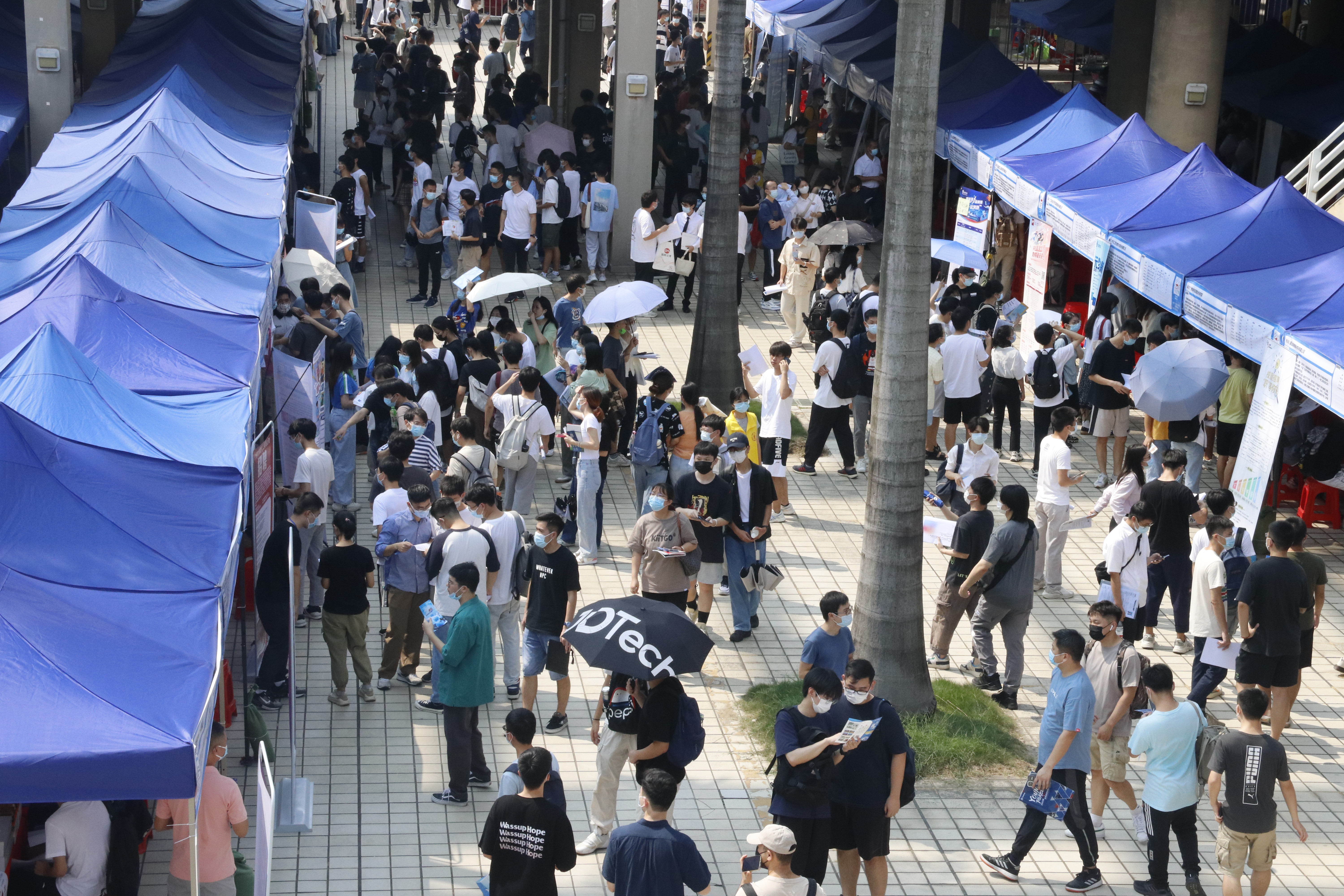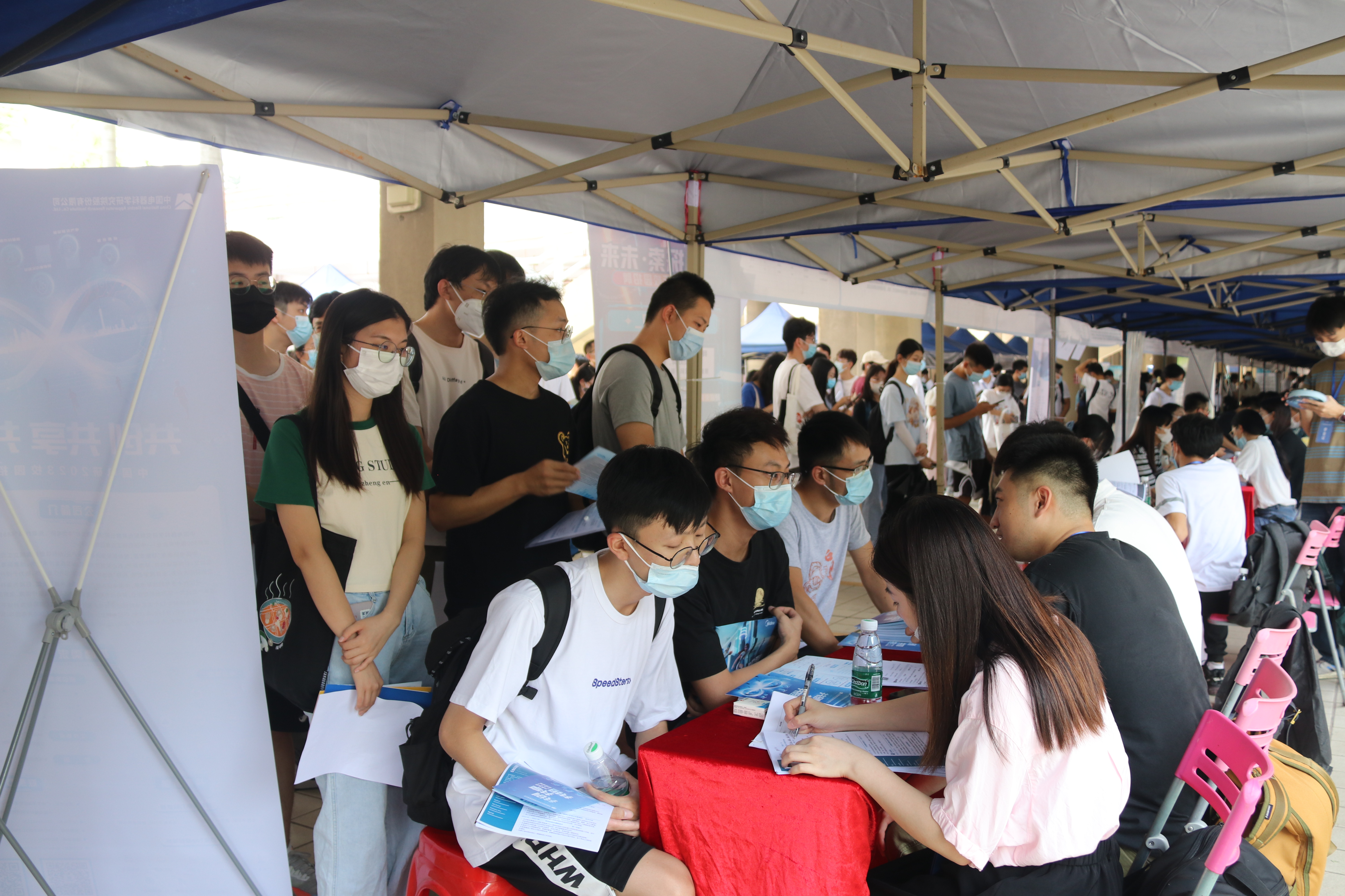 9月16日,开云网页版登录入口首场2023届毕业生秋季校园招聘会在大学城校区综合楼架空层顺利举办。本次招聘会采取线上和线下结合形式进行,共吸引了中建集团、中铁集团、京东方、比亚迪、深信服、美的、福耀玻璃、美宜佳、东阳光药业、兴业银行、中国电器科学研究院等140家名优企业进场招聘,另有310多家企业因受疫情防控影响,选择线上招聘,累计提供岗位达34293个,共有3100多名毕业班学生到场参会应聘。