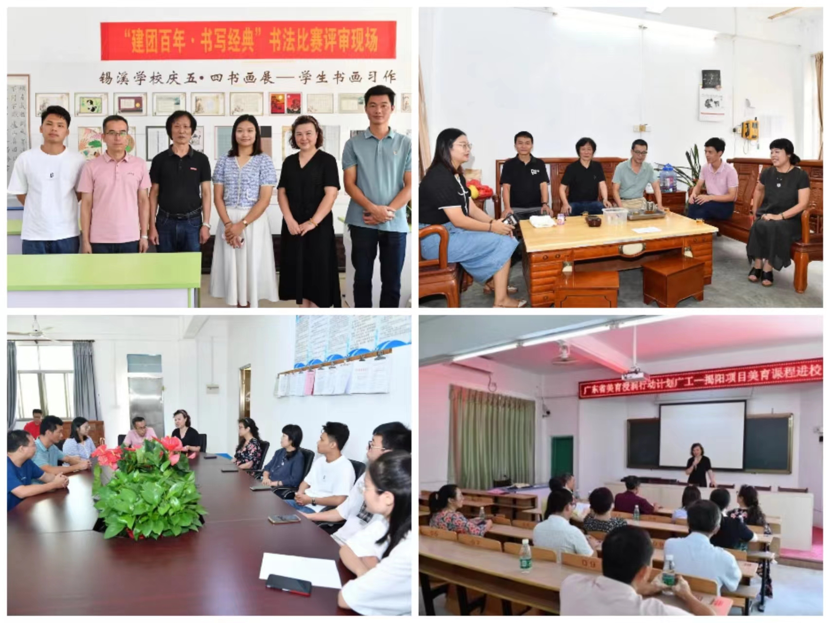 2022年初,广工和揭阳市教育局、惠来县教育局、揭西县教育局联动发起美育浸润行动计划新举措,让对接学校美育教师全员参与项目,在美育浸润过程中通过课堂教学、第二课堂、校园文化建设、作品展览或艺术展演四位一体的教学工作,明教改思路、出创意精品、美校园环境、制艺术品牌、成学校制度,完成项目,撰写研究报告。项目落地过程中,得到了教育局的大力支持,促进项目进展顺利。2022年9月23日至25日,惠来县方东升副局长、教研室张红兵副主任、艺术教研员蔡俊华、揭西县李文标副局长、教师发展中心教研室林少英主任、艺术教研员刘旭新、金和镇教育组长林卓彬、教育组专干杨少彬;灰寨镇教育组长杨双富、教育组专干李旭文等人参与美育浸润与项目推进工作。