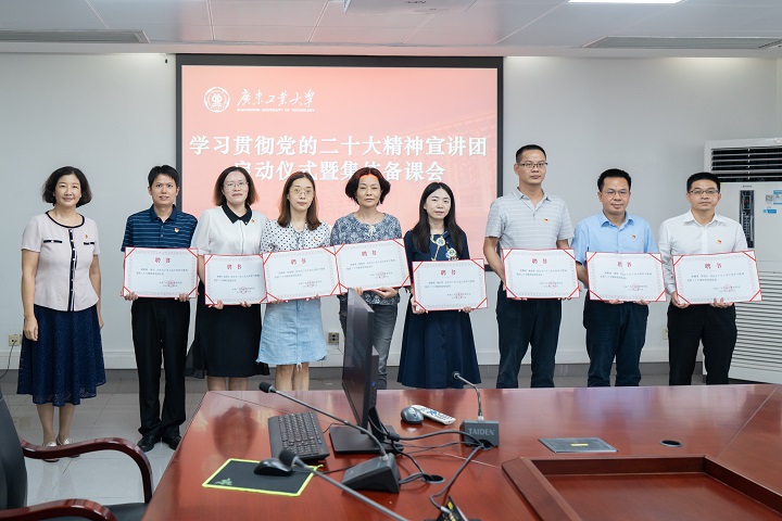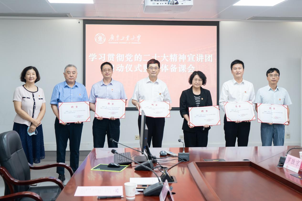 朱蔚蔚为宣讲团成员颁发了聘书。宣讲团团长、马克思主义学院院长揭晓代表宣讲团成员表示,将深刻领会党的二十大精神、精心准备宣讲、创新方式方法,相互学习、团结协作,全力以赴、不辱使命,以饱满的精神状态圆满完成学习贯彻党的二十大精神的宣讲任务。