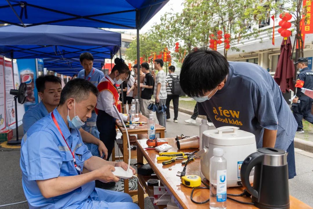 “我为师生办实事”便民服务日活动在大学城校区生活区东10—东11栋之间的校道举行。共设有40个摊位,其中义诊摊位8个,义修摊位10个,义教摊位7个,义询摊位12个,公共服务摊位3个。内容涵盖中医养生、内外科常见病咨询、视网膜病变筛查、电器家具自行车维修、眼镜空调清洗、义务理发照相、衣服缝补、电信优惠办理、厨艺教学、心肺复苏实操体验、校园金融安全、食品与生产安全、应急救援器材讲解、电梯安全使用、能源服务、汽车使用技巧咨询等。此外,现场还准备了实用的活动奖品,如凉茶、餐票、洗手液、灭蚊片等,一些摊位还安排了特色奖品。