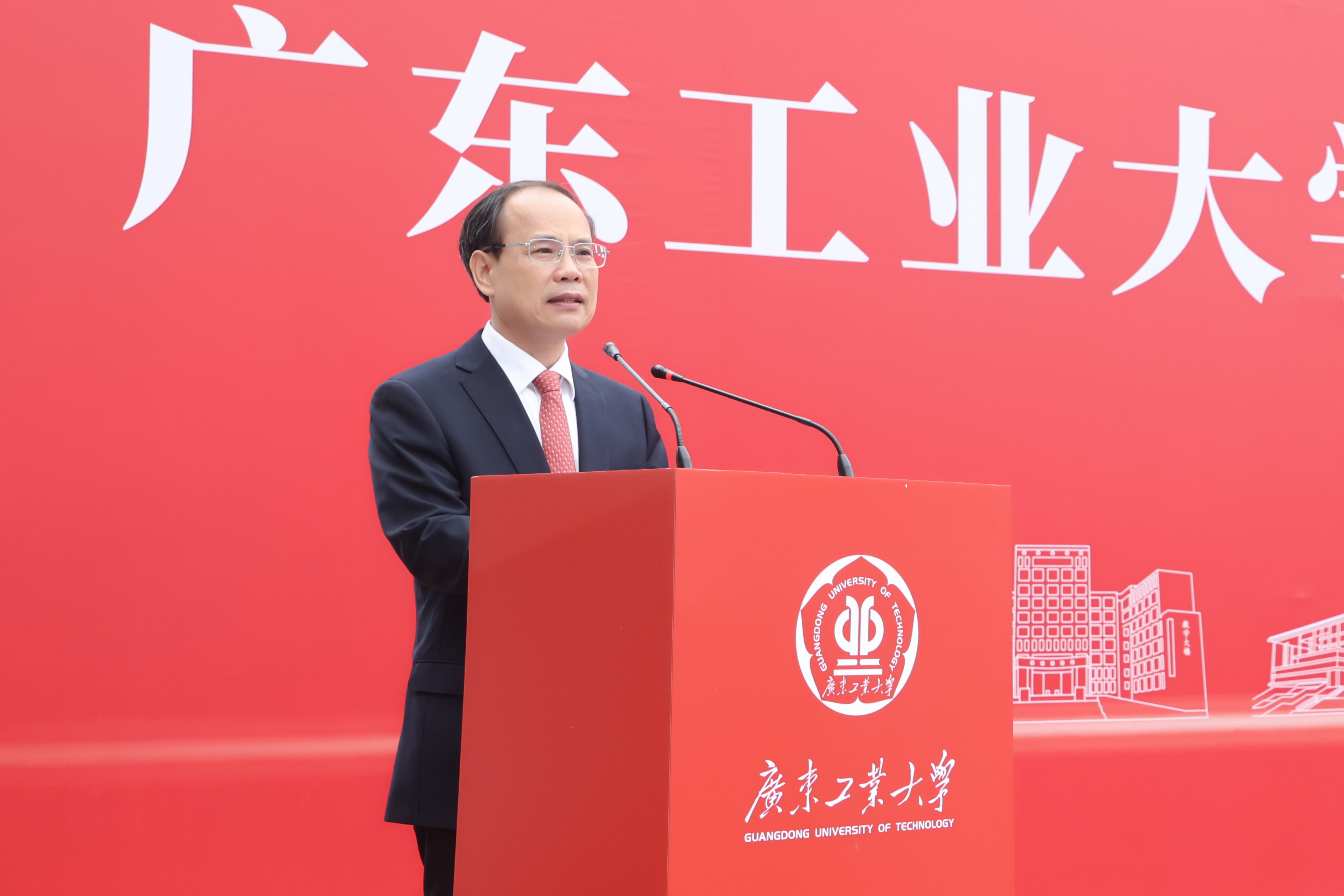 广工1996届校友、省教育厅党组成员、副厅长朱建华,广东省科学技术厅党组成员、副厅长梁勤儒受邀出席。学校党委书记胡钦太、校长邱学青,党委副书记陈良友、朱蔚蔚、陈卓武,党委常委、副校长杜承铭、王成勇,副校长余林,党委常委、副校长王振友,党委常委、副校级干部张学理等出席开馆仪式,省科技厅交流合作处主要负责人、学校各单位部门主要负责人、校友代表、师生代表共同见证。仪式由杜承铭主持。