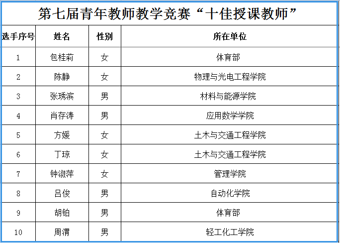 本届竞赛历时一年多,横跨两个学期,分预赛、初赛、决赛三个阶段进行。通过预赛,推选出40名选手参加复赛。复赛阶段,由学校聘请专家评委进行参赛教师授课现场评分、查检教案等,最后18名选手进入决赛。经过激烈的角逐,最后评选出“十佳授课教师”、“优秀授课教师”和“最受学生欢迎奖”。最后,黄慧民教授做总体点评并宣布比赛结果。