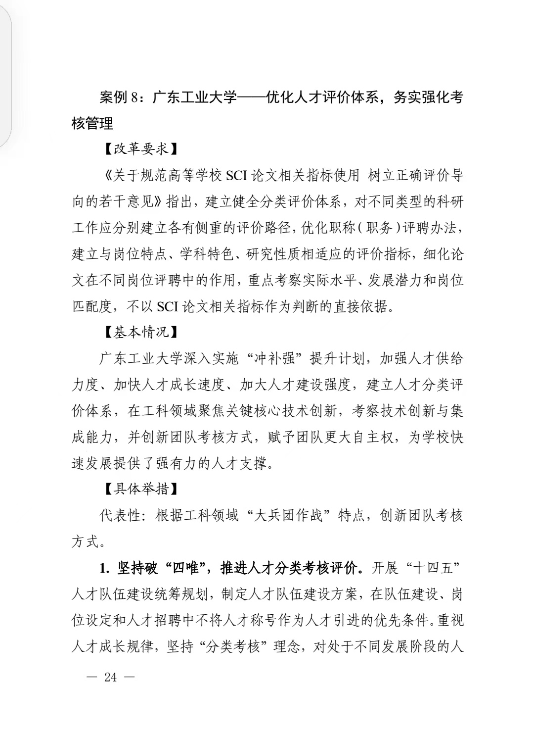 在全省实施高等教育“冲补强”提升计划的背景下,学校坚持破“四唯”,推进人才分类考核评价,加大人才供给力度、加快人才成长速度、加大人才建设强度,建立健全人才分类评价体系,在工科领域聚焦关键核心技术创新,考察技术创新与集成能力,创新团队考核方式,赋予团队更大自主权,为学校快速、高质量发展提供了强有力的人才支撑。
