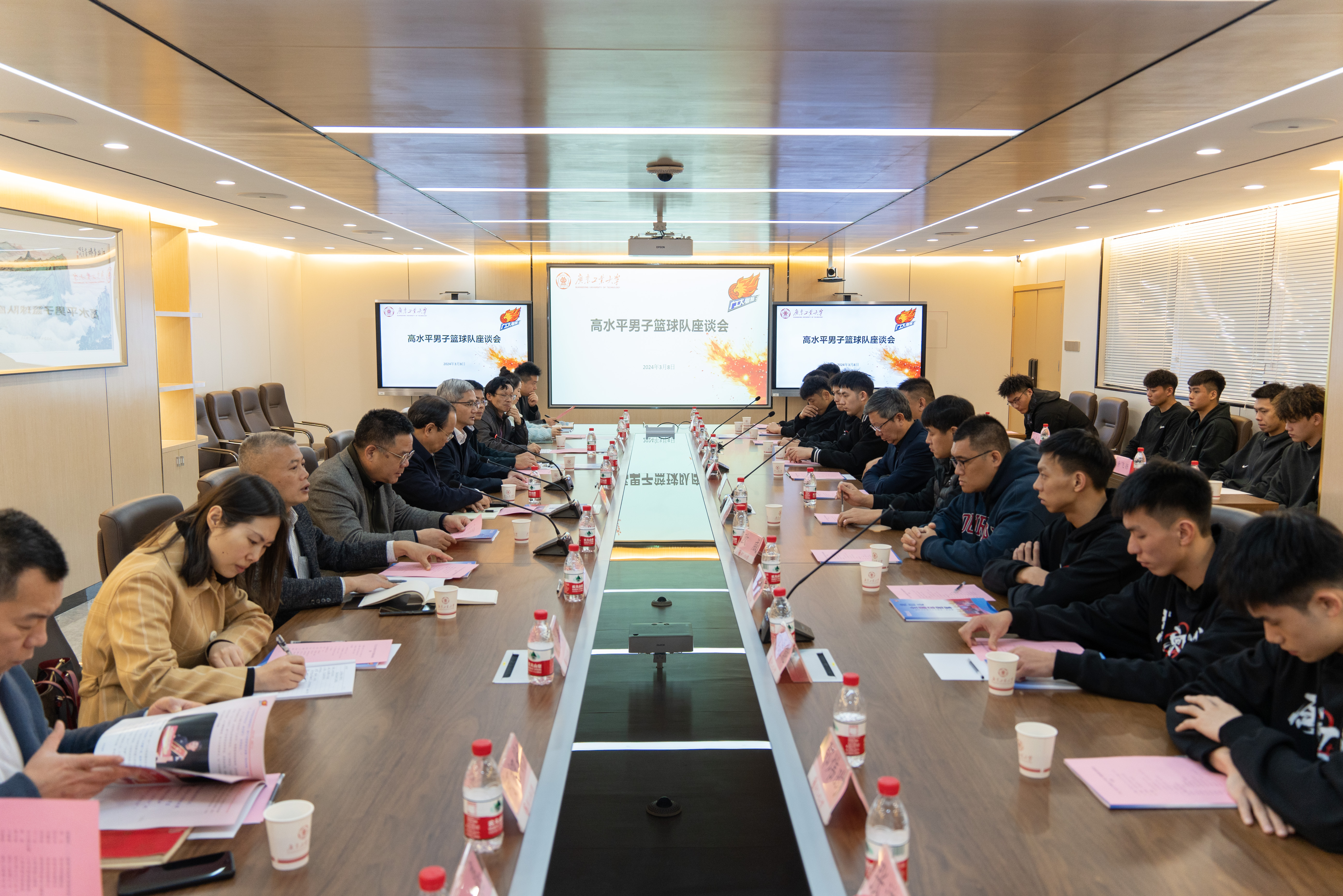 3月8日上午,学校在龙洞校区行政楼310会议室召开高水平男子篮球队座谈会。校长邱学青,党委副书记陈卓武,党委常委、副校长杜承铭出席会议,学校党委办公室、校长办公室、宣传部、教务处、管理学院、经济学院、法学院、体育学院相关负责人,篮球队教练团队及全体队员参加会议。会议由陈卓武主持。