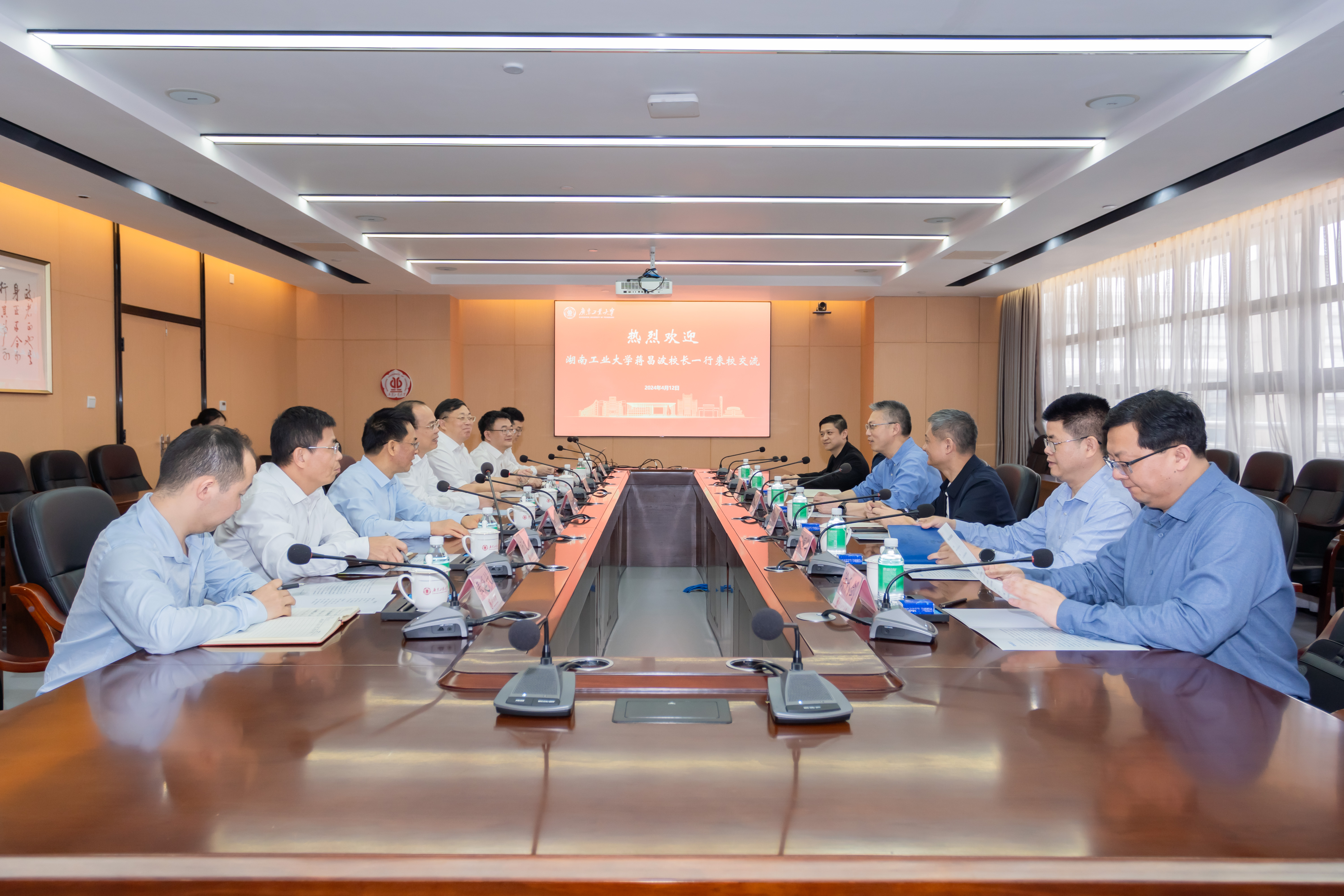 蒋昌波对学校的办学情况、办学特色等方面进行了介绍,他表示,广工办学特色鲜明、学科优势突出,近些年发展势头强劲,当前正是湖南工业大学加速发展的关键时期,希望借此机会向学校学习好的经验做法,在学科建设、科研合作、成果转化、人才培养等方面加强交流。