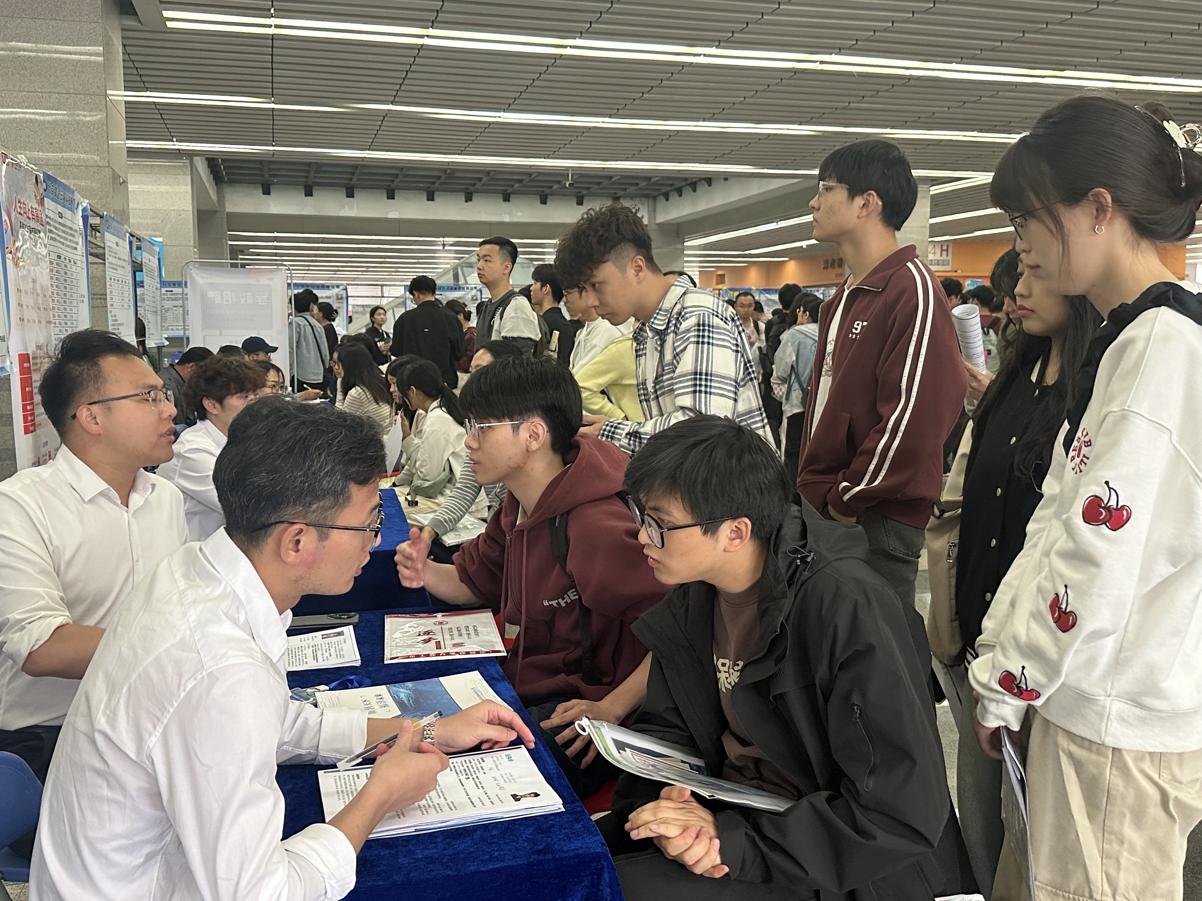 招聘会现场人头攒动,毕业生们在与招聘人员交流过程中展现出理性择业观,相对更专注于岗位的核心职责、发展前景以及对自身能力的要求。其中,轻工化工学院的郑同学则提到:“参加招聘会前,提前了解企业业务与岗位要求极为必要,只有这样才能在交流时展现自身优势,此外,职业发展规划的契合度不容忽视。”自动化学院的陈同学称:“与HR沟通时,了解企业对新员工培养计划很重要,关乎个人成长,期待参与有前景项目,薪资合理,向往积极向上的企业文化。”
