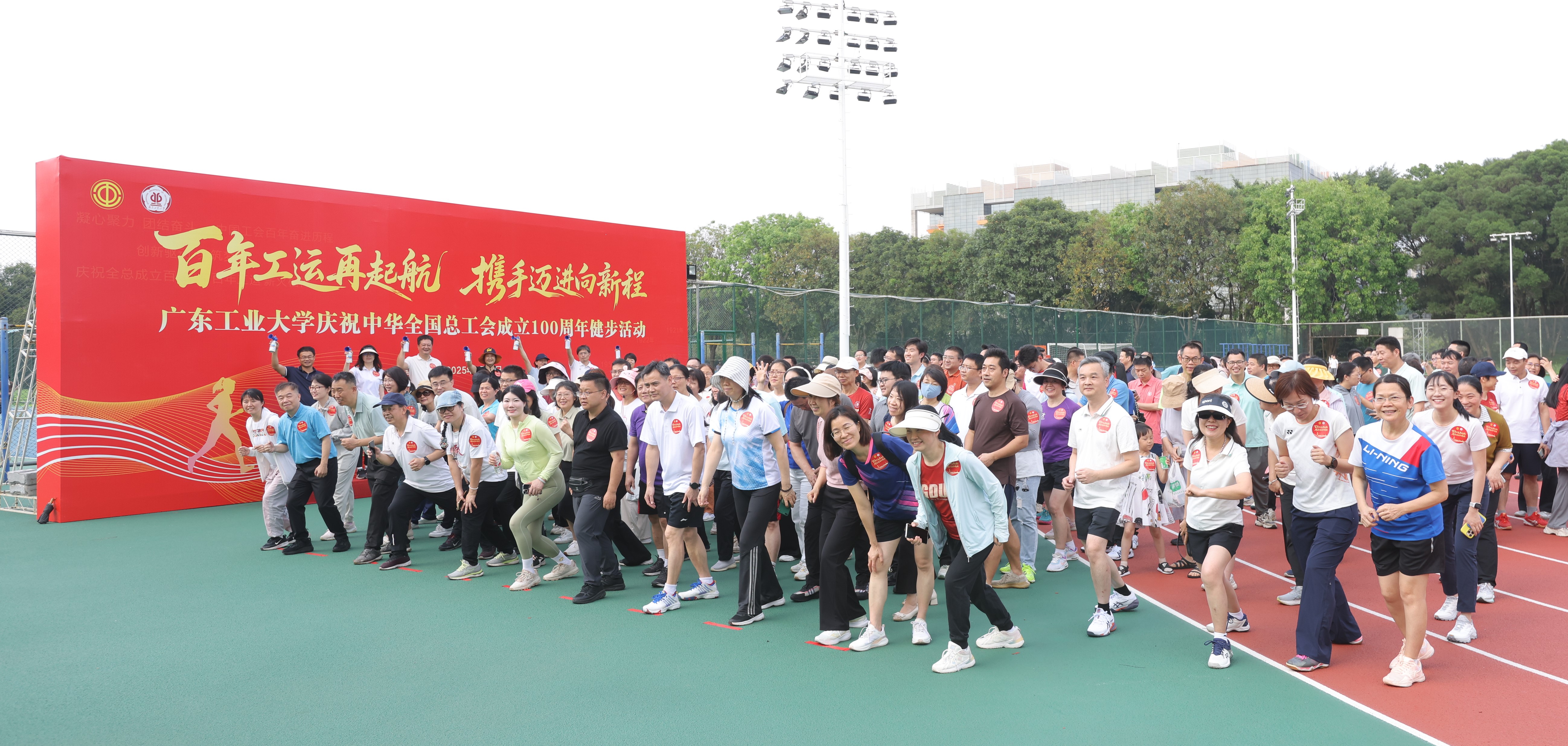 近日,为庆祝中华全国总工会成立100周年,积极响应国家"体重管理年"全民行动号召,学校以"百年工运再起航,携手迈向新程"为主题,在大学城校区成功举办了"工会人"健步走活动。学校党委副书记朱蔚蔚出席活动,全校工会干部、工会积极分子300余人共同参加,以实际行动献礼工运百年华诞。