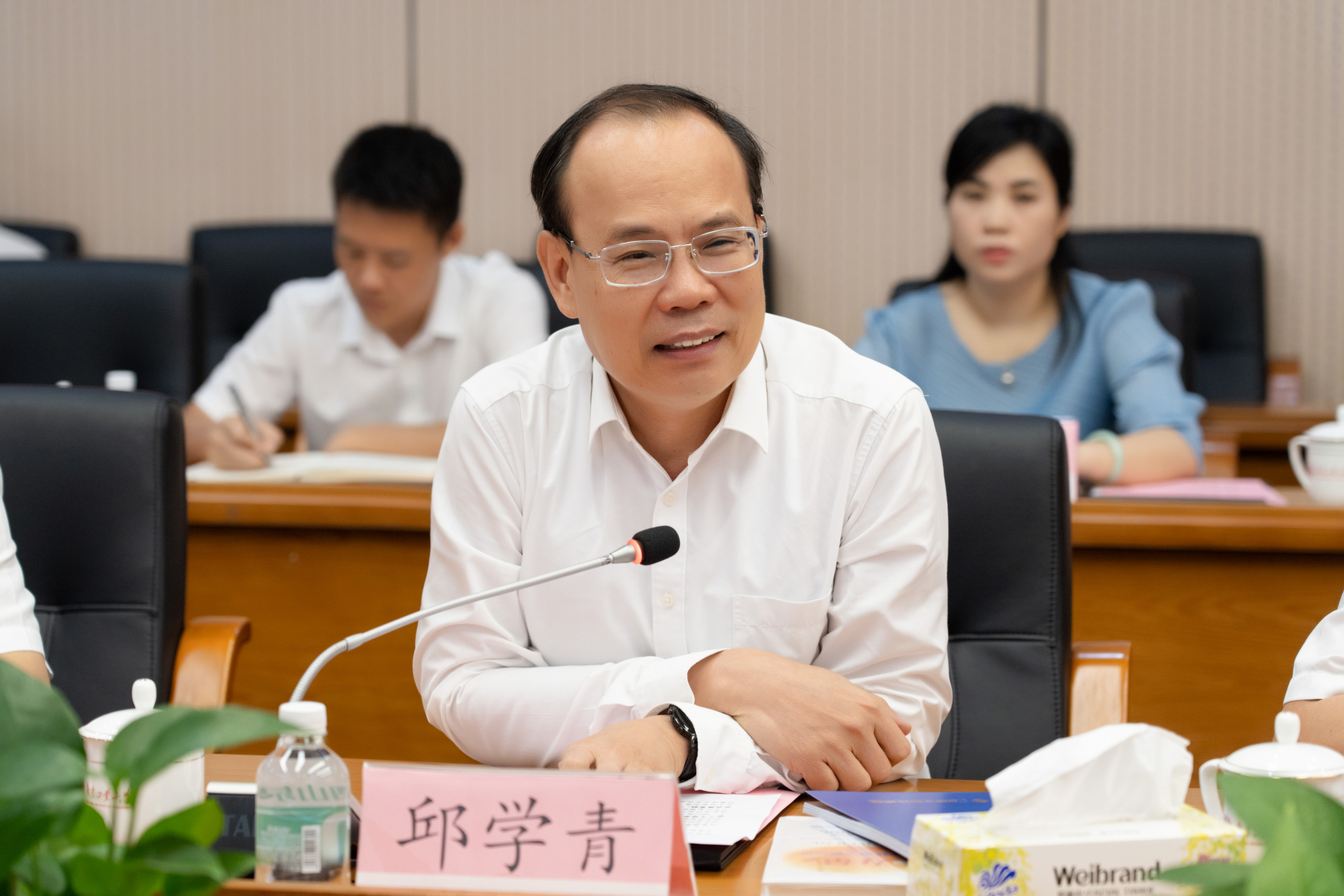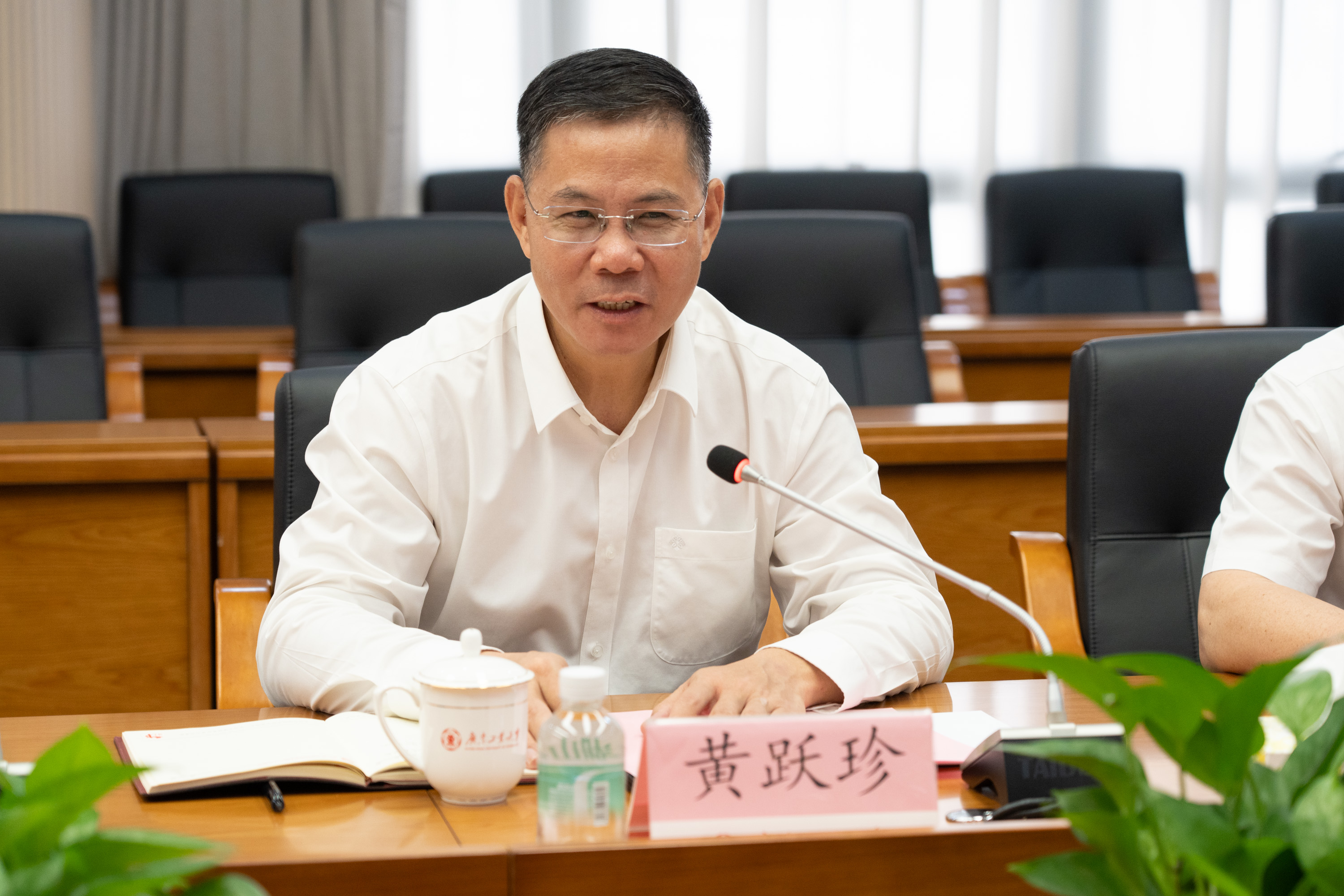 邱学青对黄跃珍一行的到来表示热烈欢迎。他表示,学校致力于打造工程技术创新引擎,努力成为卓越工程师的摇篮,实践探索“三位一体、5I并进”的人才培养“广工模式”,以科教协同、产教融合、竞教贯通持续培养高素质创新型人才,为广东加快实现高水平科技自立自强、发展新质生产力提供人才支撑,并结合案例分享了学校在创新创业教育、以美化人、以体育人等方面的生动实践。