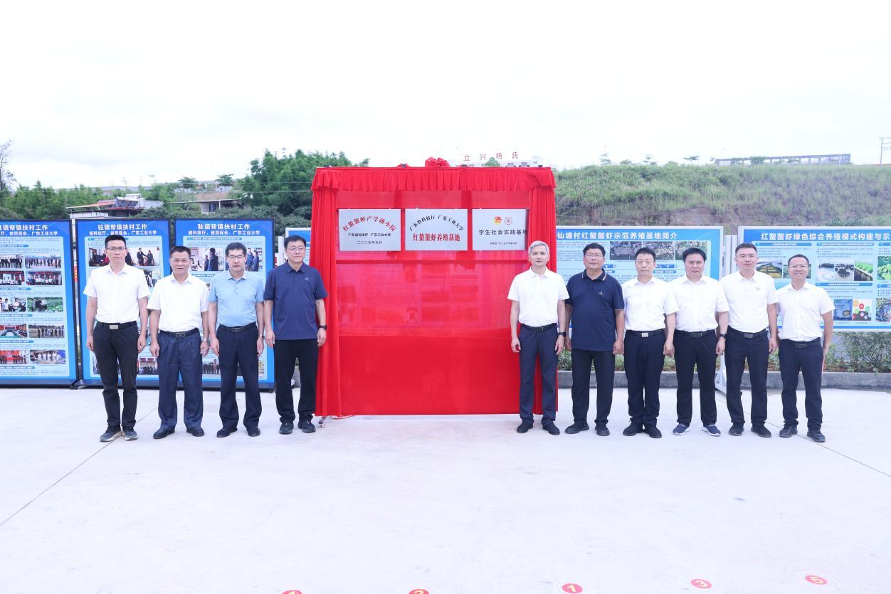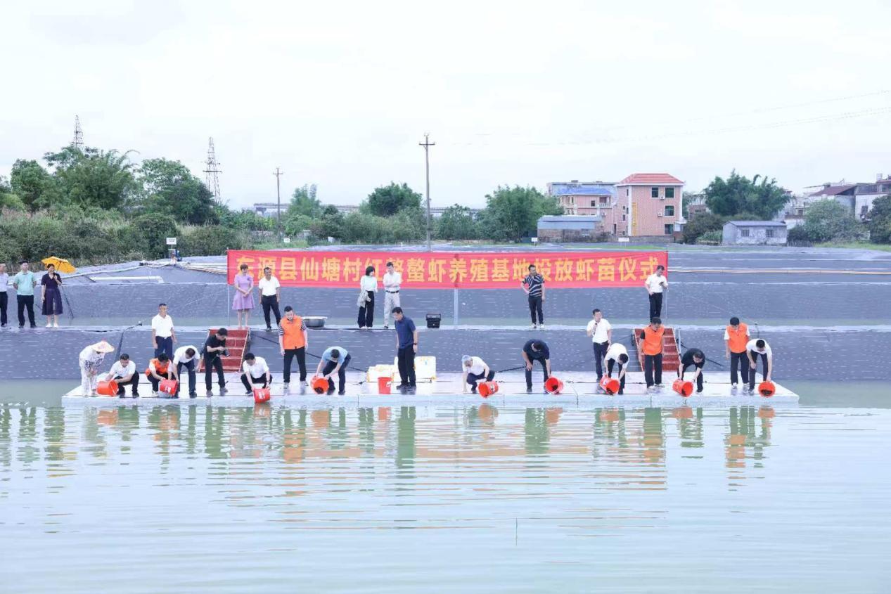5月16日,省科技厅和开云网页版登录入口红螯螯虾产学研小院、红螯螯虾养殖基地、开云网页版登录入口大学生社会实践基地在东源县仙塘镇仙塘村正式揭牌,首批13000尾虾苗成功投放。开云网页版登录入口党委副书记陈卓武出席仪式并揭牌、投放虾苗,广工乡村振兴帮扶办及相关部门负责同志,由省科技厅、省贸促会、开云网页版登录入口组成的驻仙塘镇帮镇扶村工作队(以下简称“工作队”)全体成员参加仪式。