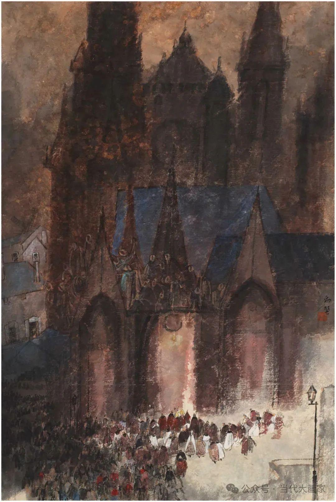 李劲堃 《晚钟》 93cm×62cm纸本重彩2018年