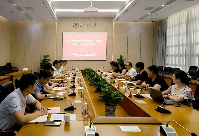 7月8日下午,新疆大学党委常委、副校长晋刚率队到广工调研交流。学校党委书记白建刚,党委常委、副校长王振友在大学城校区大讲堂会见来宾,双方围绕异地办学、编制保障及编制优化等座谈交流会。