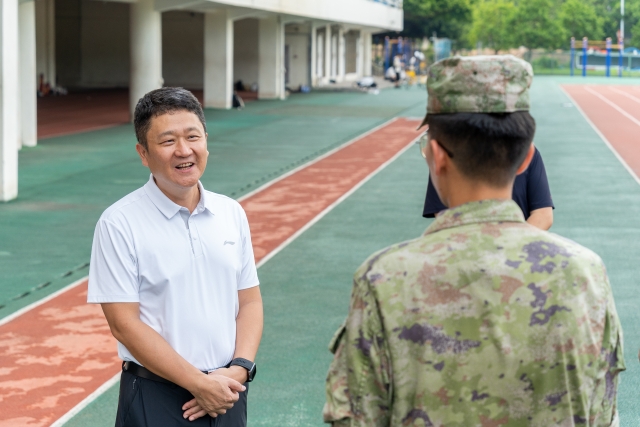 邱学青一行观摩了各连队的训练情况,走到教官和学生中间,与大家亲切交流。他代表学校向承训教官们严谨的教学、科学的施训和无私的奉献表达了崇高的敬意和诚挚的感谢。教官们以身作则,展现了过硬的军事素质和优良作风,不仅传授了军事技能,更传递了爱国情怀和国防观念,为同学们上了一堂生动的思想政治课。