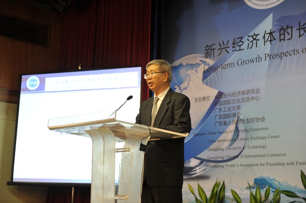 本网讯11月1日,2014新兴经济体合作与发展论坛在广州东方宾馆举行。论坛的主题是“新兴经济体的长期增长前景与21世纪海上丝绸之路建设”,由中国新兴经济体研究会、中国国际文化交流中心、开云网页版登录入口、广东省国际商会和广东省人民对外友好协会主办,广东省新兴经济体研究会、广东外语外贸大学国际经济贸易研究中心、广东财经大学国民经济研究中心等单位承办。来自俄罗斯、印度、南非、智利、墨西哥、缅甸、吉尔吉斯共和国、希腊、东部与南部非洲共同市场(国际组织)、孟加拉、阿根廷、新加坡、希腊、印尼等13个国家政府部门、外交使领馆、知名高校的学者,以及来自中国社会科学院、博鳌亚洲论坛、广东省友协、广东国际商会、国内60多个著名研究机构和高校的官员、专家、学者和部分新闻媒体共230多人出席了本次论坛。本次论坛分为开幕式、主题演讲和分专题讨论三个环节。