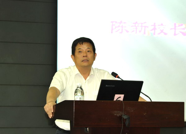 在20日上午举行的主题报告与校情校史专题报告会上,陈新作了讲话,对新入职教工加入广工大家庭表示热烈欢迎。他说,新教工要充分地了解学校的文化、历史和现状,尽快地融入学校的发展,把青春和热血奉献到学校正在实施的“创新强校工程”中来,在这个过程中,荣耀自己,也荣耀广工大。谈到高水平师资队伍的建设,他说:“建设高水平的地方大学,对我们是一个严峻的挑战,也是重要的发展机遇。在学校的发展中,高水平师资队伍建设是个牛鼻子,我们始终抓住不放松。学校正准备出台更加有力的措施,来进一步推动师资队伍的建设。”陈新希望年轻的老师能尽快融入科研团队,适应市场和社会发展的需要。他说,“我们尊重个人的兴趣和学术自由,也希望年轻的硕士、博士、博士后们,能够在以前学校和研究的基础上,更好地融合在科研团队”。对于新入职的管理干部和辅导员老师,陈新希望大家用习近平总书记提出的“好干部标准”严格要求自己,不断提高业务能力和服务水平。最后,他寄语大家:只有提升能力,才能适应社会和学校的发展,也才能获得最美好的未来。