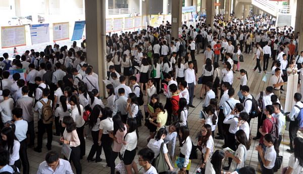 本网讯10月18日,我校首场2015届毕业生综合类大型招聘会在大学城校园举办。本场招聘会入场单位包括以珠三角地区(广州、深圳)为主的广东省以及少部分省外企业共278家,提供岗位数近4500个,提供的月薪资待遇平均在3500-4500元,覆盖行业主要为制造业、IT类、零售和教育等多个领域,吸引来自本校的毕业生及少部分其他高校的毕业生近7000人次入场求职。本场招聘会学校还加强与地方人力资源和社会保障局的合作,专门设置了汕头市招聘专区。