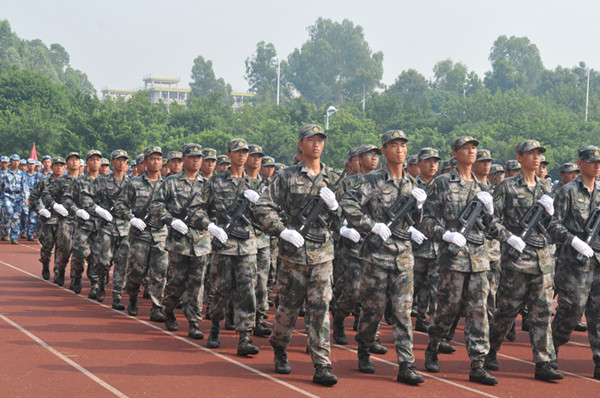 陈新、汤耀平、米银俊分别在三个校区作军训总结讲话。校领导在讲话中充分肯定2014级新生军训丰硕成果,希望同学们要自觉学习和践行习近平总书记对大学生提出的“勤学、修德、明辨、笃实”的价值观,鼓励同学们要继续发扬军训精神,奋勇拼搏,锐意进取,为自己的梦想、为学校的梦想、为中华民族伟大复兴的中国梦努力奋斗。校领导代表学校对承担本次军训任务的武警广东总队第二支队和承训官兵表示衷心感谢和崇高敬意。今年新生军训各项工作进展顺利,受训学生达10502人,完成了教学大纲规定的所有科目,还开展了校园安全、守法教育和消防、应急疏散演练等,实现了“准备充分、组织严密、动作有序、应对有效、服务周到、保障有力”的预期目标。