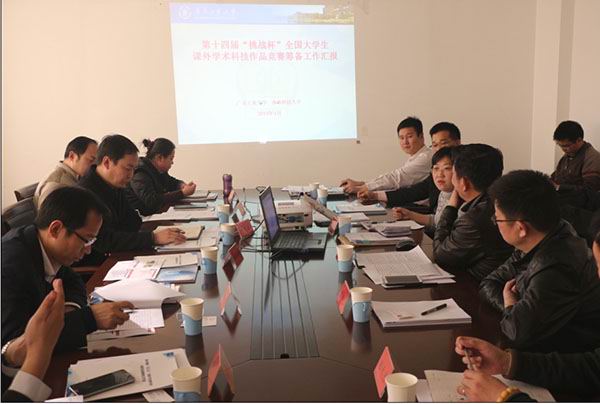 陈新在向团中央等主办单位详细介绍全国“挑战杯”竞赛前期筹备工作情况及下阶段筹备方案时指出,在党和国家实施驱动创新战略,全国上下掀起创新创业的新高潮的大背景下,我们积极围绕团中央、省政府等主办单位的要求,将以“开放、融合、协同、发展”作为本届“挑战杯”竞赛的办赛理念,以引领创新大众化、推动创新国际化、探索创新产业化、实现创新常态化作为办赛目标。陈新表示,在总体进度安排上,我们随着时间的推移,由远到近、由面到点、由散到聚、由低到高,从海内外、境外内、校内外,有节奏的安排赛事活动,逐步把所有眼光聚焦到终审决赛赛时的小谷围岛上,把赛事的氛围引燃推向高潮。特别是探索大学生创新创业成果如何与自贸区、园区、企业、金融行业的实现无缝对接,推动粤港澳台大学生创新创业基地(创客空间)建设,实现粤港澳台大学生创新创业交流的常态化发展等方面进行谋划和实施。
