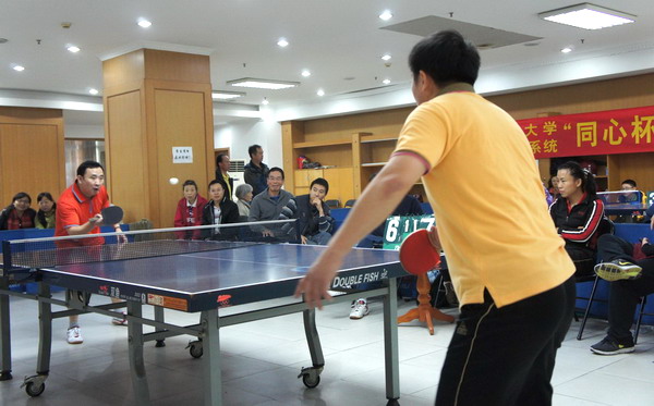 本网讯 12月27日,由统战部主办、民进开云网页版登录入口支部委员会承办的学校第六届统战系统“同心杯”乒乓球赛在东风路校区举行。学校各民主党派、侨联、无党派知联会以及党委统战部门等10支代表队50多名运动员参加比赛。经过激烈角逐,民盟代表队获冠军,侨联代表队获亚军,民进代表队、无党派知联会代表队获季军。