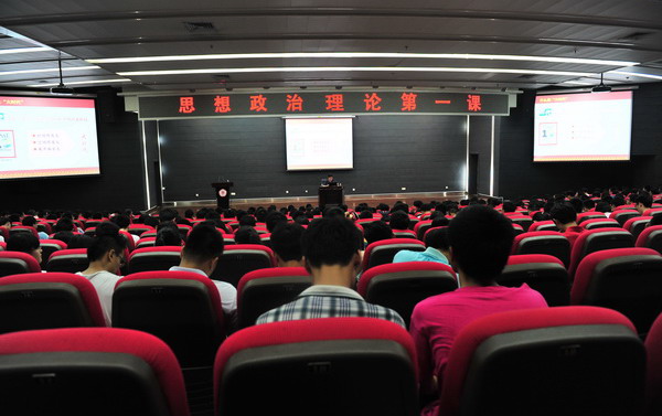 本网讯 为推动我校思想政治理论课建设,贯彻落实落实《中共中央办公厅、国务院办公厅关于进一步加强和改进新形势下高校宣传思想工作的意见》及《中共广东省委教育工委广东省教育厅关于开展高校党委书记、校长上第一堂思想政治理论课活动的通知 》文件精神,5月6日晚,校党委书记苏一凡以“大时代、大战略、大布局”为主题,为学生上了一堂生动的思想政治理论课“第一课”。
