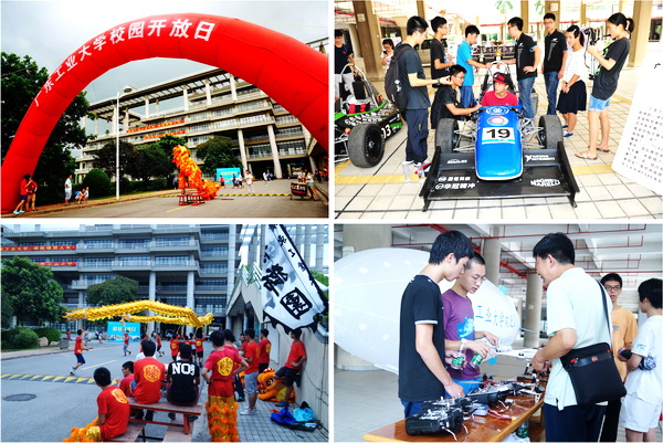 校园开放日主要采取现场互动、各院系和职能部门设立咨询处的形式进行。活动现场的展板图文并茂地展示了我校校园文化、学生创新创业、优良班风学风建设、就业情况等。学生创新创业作品成果展、学校FSAE车队自主研发的华南地区第一台电动赛车、广东省“挑战杯”特等奖作品: 新型飞行器(或新型飞艇)等的展演和学生龙狮队的舞狮表演等充分展示了我校学子的风采。