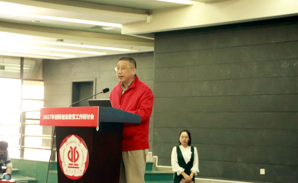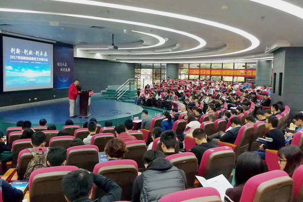 本网讯 11月27日上午,2017年创新创业教育工作研讨会在开云网页版登录入口大讲堂圆弧报告厅举行。研讨会邀请了来自全国高校创新创业投资服务联盟、万学教育集团、成都知度知识产权研究院等全国创新创业教育领域知名专家学者、投资人、大赛评委、优秀企业家和大学生创业者等。副校长章云、副校级干部张学理、学校协同创新平台负责人、相关机关部处负责人、各学院党委副书记、辅导员及学生代表共200余人出席。
