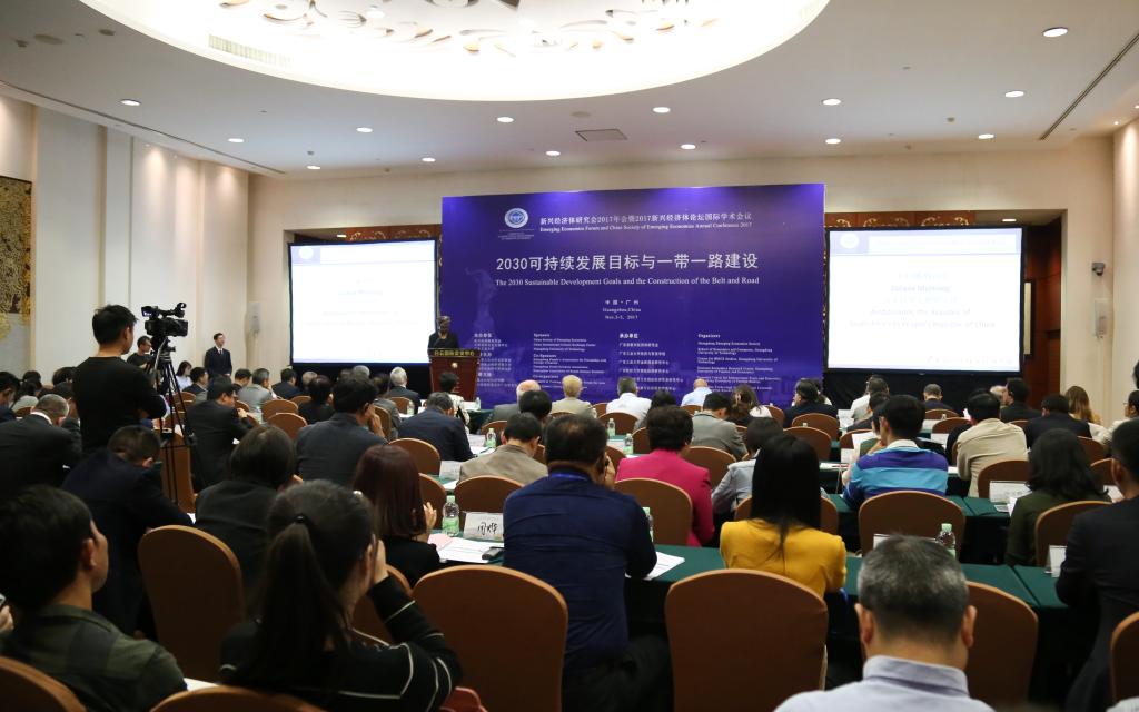 本网讯 11月4日,为期2天的2017年新兴经济体论坛在广州白云国际会议中心开幕。此次国际学术会议以 “2030 可持续发展目标与一带一路建设”为主题,吸引了来自巴西、瑞士、南非等多国的研究人士,及国内60多所高校和研究机构180多人参会。主题论坛由我校副校长陈为民主持。