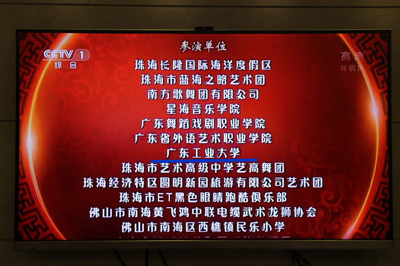 本网讯 在央视2018春晚珠海分会场上,广工学子登上春晚舞台,为全国人民送上精彩表演。他们与南方歌舞团、星海音乐学院舞蹈学院、广东舞蹈戏剧学院等专业舞蹈演员一起,出演了分会场直播连线的主体节目——歌曲《勇气》,用自己的演绎向全国人民拜年;零点钟声时,又再一次出现在镜头前,为全国人民送上祝福。
