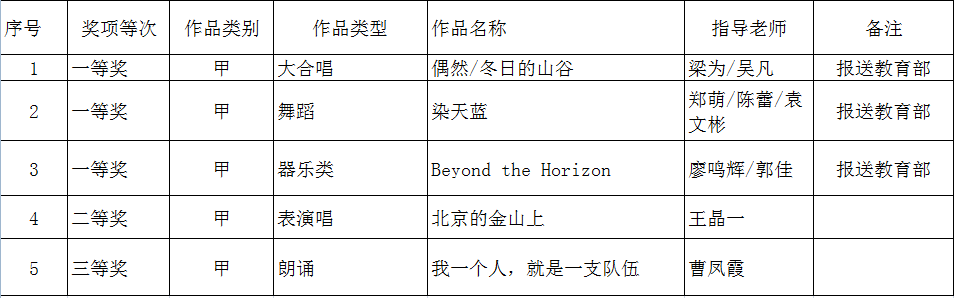 本网讯 从省教育厅【2017】125号文获悉,在广东省第五届大学生艺术展演中,我校合唱、器乐、舞蹈团体项目均以非专业组总分第一的成绩,荣获广东省一等奖第一名,并代表广东晋级全国决赛。至此,全国第五届大学生艺术展演广东省赛区全部赛事活动在2017年岁末全部结束。