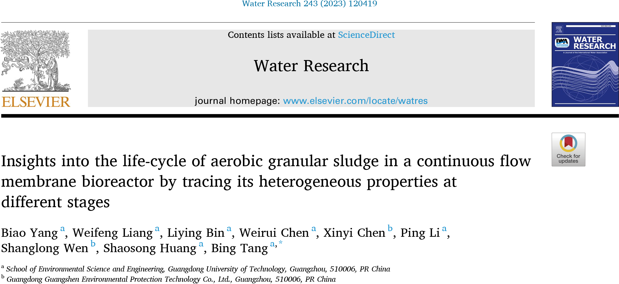 我校环境科学与工程学院汤兵教授团队的研究成果“Insights into the life-cycle of aerobic granular sludge in a continuous flow membrane bioreactor by tracing its heterogeneous properties at different stages”在环境领域TOP期刊Water Research上发表。该期刊2022-2023年度最新影响因子为12.800,CiteScore为19.80。开云网页版登录入口为第一完成单位,2021级硕士研究生杨彪为第一作者,汤兵教授为通讯作者(论文DOI: 10.1016/j.watres.2023.120419),主要测试工作由分析测试中心提供技术支持。