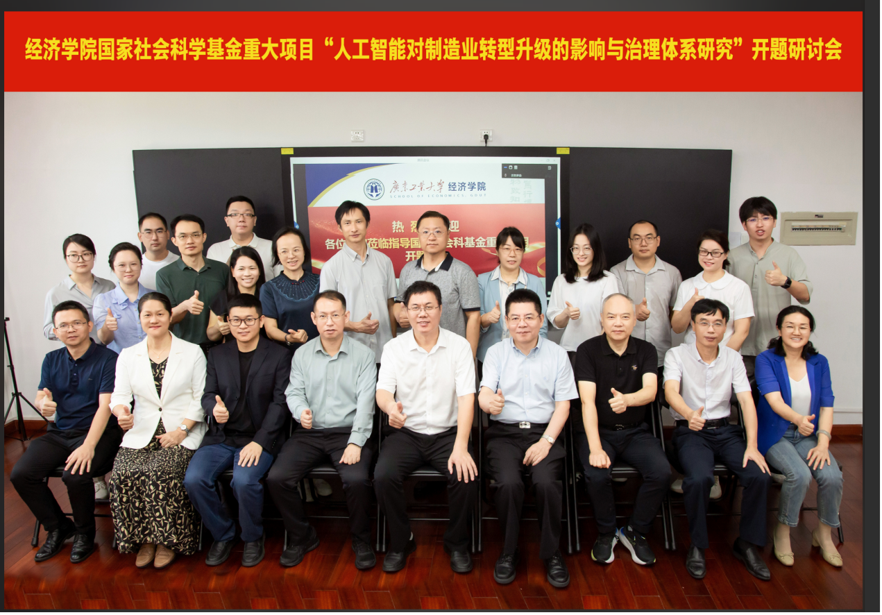 项目首席专家谢卫红教授作项目开题汇报,详细介绍项目的研究背景、研究现状、研究内容、研究思路方法、研究进度与已开展的工作,并表示课题组将在深入剖析人工智能的特征、本质,揭示人工智能对制造业转型升级的影响效应、机制、治理体系及其内在规律基础上,提出符合我国实际的治理体系与对策。子课题负责人张光宇教授,吕鹏教授分别汇报研究进展情况。与会专家对项目研究给予高度评价,围绕项目的研究重点、方向、方法等方面进行充分的研讨交流,提出具有针对性、指导性的意见和建议。林伟英代表经济学院对与会专家学者表示衷心的感谢,重大项目对学院学科建设、科研和人才培养等具有重大意义,学院将为重大项目提供全方位保障,支持项目顺利实施。开题报告会的成功举行,为项目接下来的顺利实施奠定了坚实的基础。预祝项目取得丰硕成果,为我国新型工业化、制造强国建设等做出重要贡献。