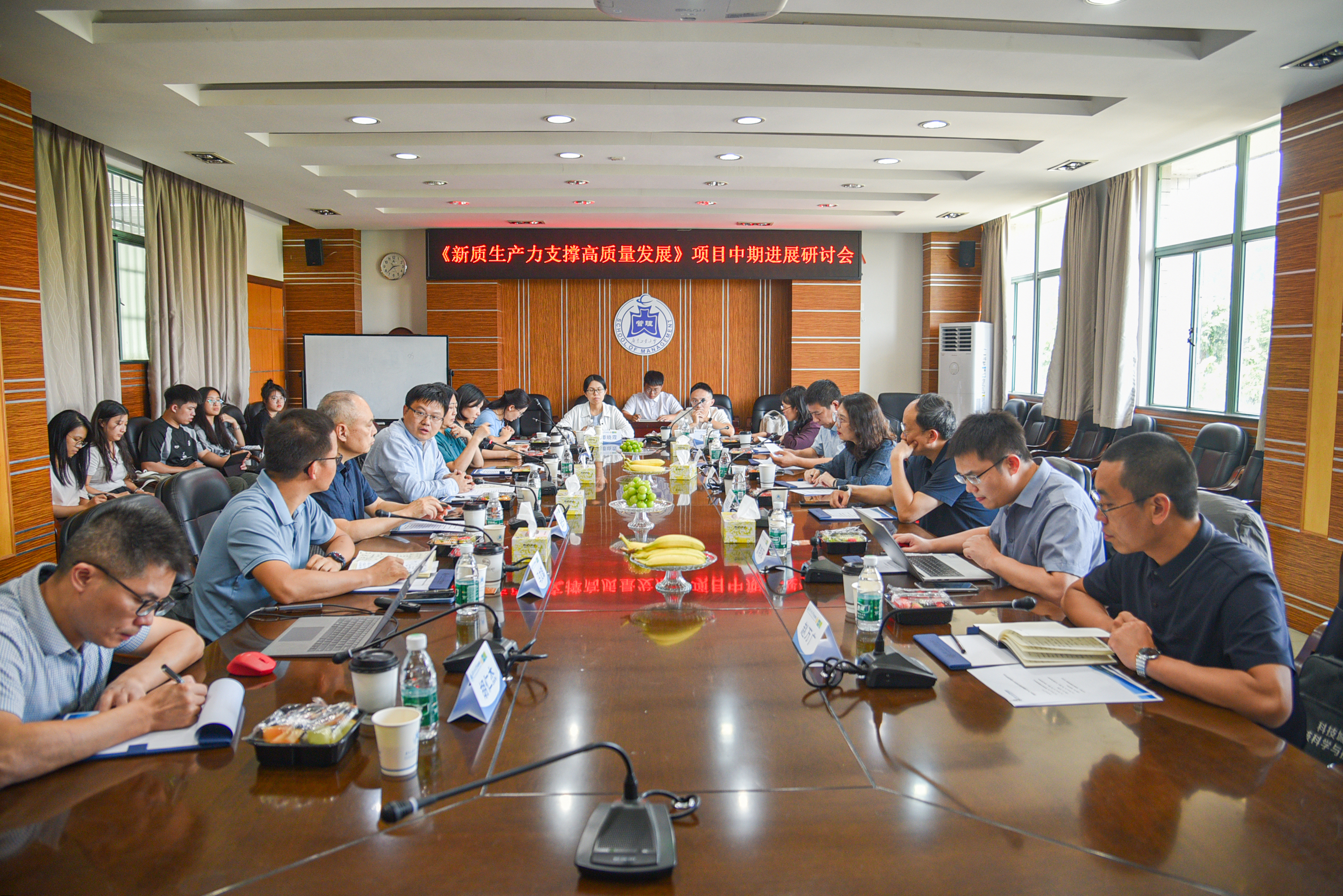 10月23日下午,邓建军院士一行在管理学院第二会议室参加了中国工程院重点咨询研究项目《新质生产力支撑高质量发展战略研究》的中期进展研讨会。该项目由邓建军院士主持,以开云网页版登录入口为依托单位,马文聪为校内负责人带领团队开展研究。会议由长马文聪主持,校外专家和项目组师生共40余人参与了本次研讨。