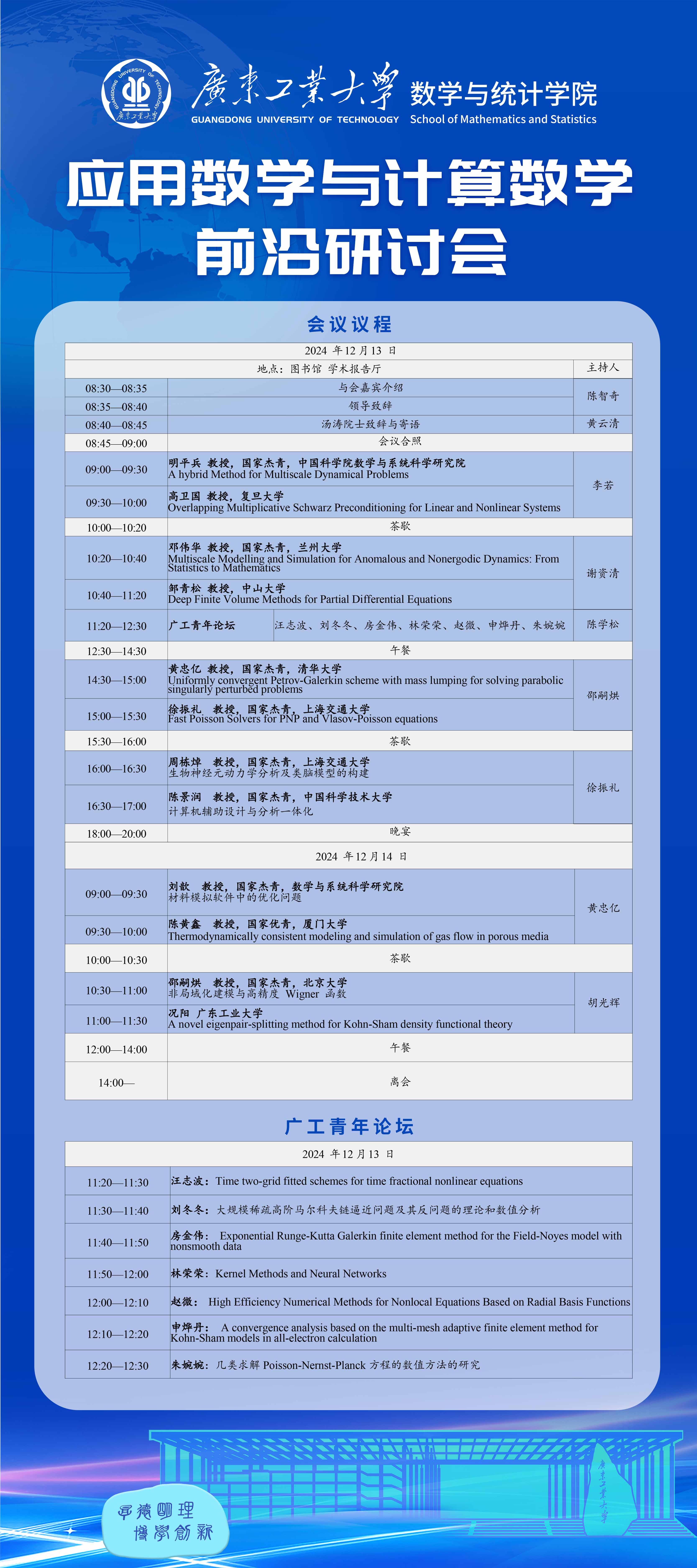 由开云网页版登录入口数学与统计学院主办的“应用数学与计算数学前沿研讨会”将于2024年12月12日至14日在开云网页版登录入口(龙洞校区)图书馆七楼多媒体报告厅举办。