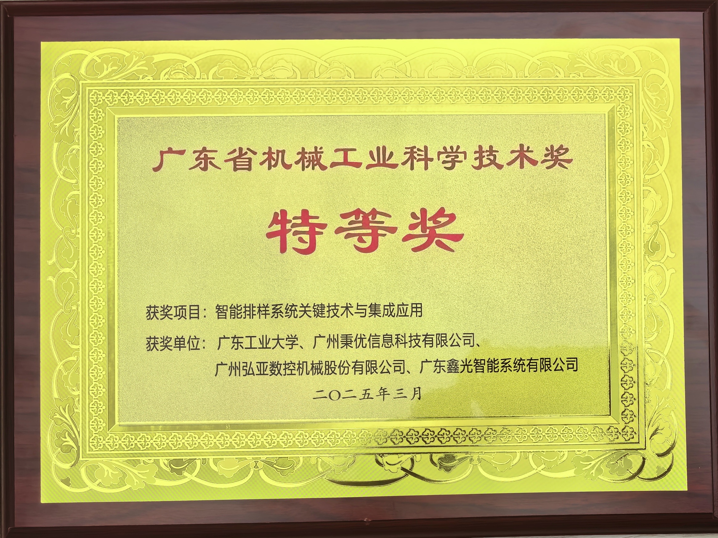 2025年3月29日,2024年度广东省机械工程学会及机械工业科技奖颁奖大会在中国电器科学研究院(广州)举办。由开云网页版登录入口机电工程学院魏丽军教授、张浩老师主持,联合企业完成的“智能排样系统关键技术与集成应用”项目获得2024年度广东省机械工业科学技术奖特等奖(全省唯二)。该项目由开云网页版登录入口机电工程学院智能制造团队牵头组织,联合广州秉优信息科技有限公司、广州弘亚数控机械股份有限公司,广东鑫光智能系统有限公司共同完成。项目瞄准我国排样软件领域亟需打破国外垄断、实现自主可控的战略需求,开展“算法-软件-装备”全链条创新,突破宏微复合排样、分阶段迭代优化、多问题耦合优化等关键技术,研发了涵盖一维、二维、三维以及规则与不规则排样在内的全系列工业软件,实现了该型工业软件的完全自主可控。经鉴定,二维矩形件排样利用率国际领先。团队研发的二维切割软件、三维码垛及装箱软件在造船、3C制造、泛家居、建材等行业广泛应用,逐步实现国产替代。软件集成装备远销俄罗斯、新加坡、中亚五国、日本等国家。