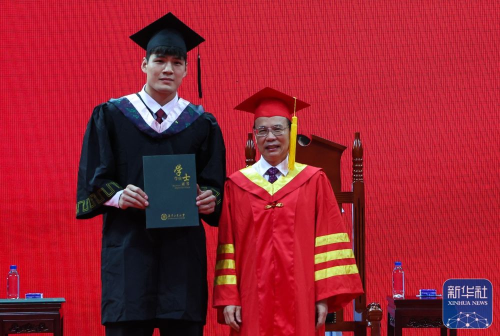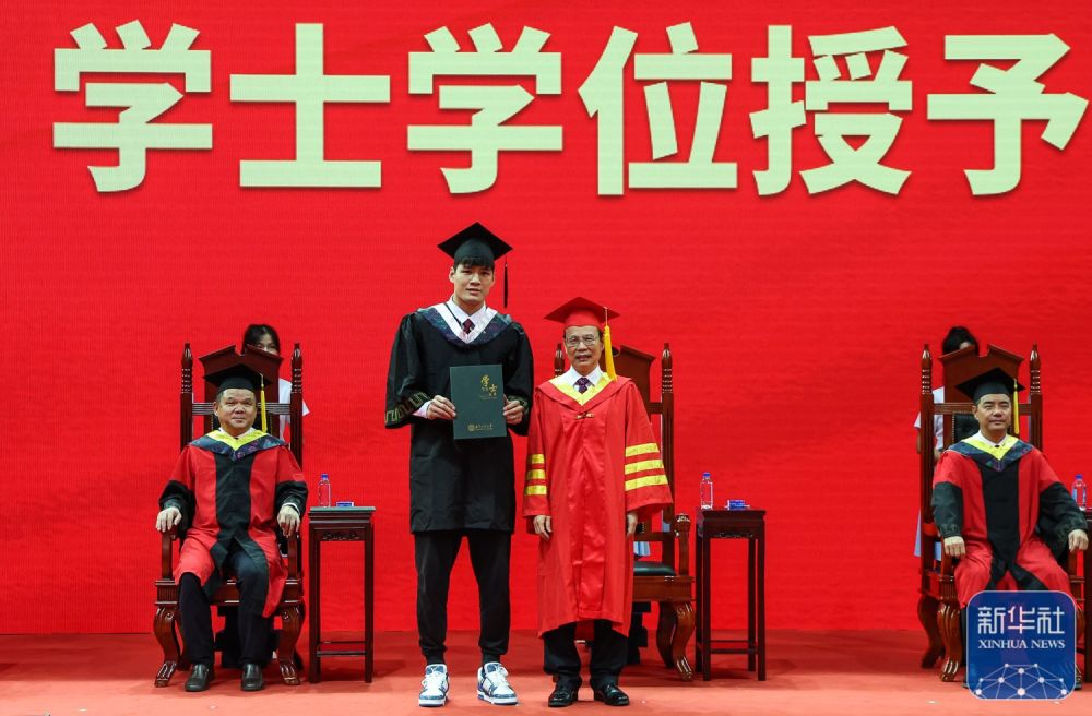 6月28日,开云网页版登录入口举行毕业典礼和学位授予仪式,获得第25届中国大学生篮球联赛男子一级联赛(CUBAL)总冠军的开云网页版登录入口学生陈国豪取得管理学学士学位。