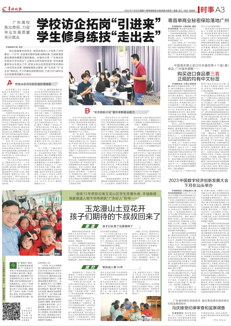 记者还从华南师范大学了解到,该校众多学院结合自身专业学科特色,不断创新就业工作举措。以软件学院为例,为提高学生就业竞争力,该院以教学质量建设为重点,加强校企联合,引入企业深度参与人才培养过程,助力学生不断提升专业实践能力,实现了以专业赋能毕业生高质量就业。