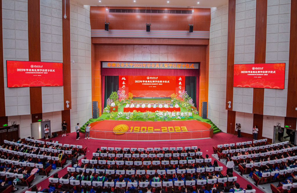 六月仲夏,广东多所高校陆续举办了毕业典礼和学位授予仪式,部分高校还设置了特别的主题。华南农业大学以“繁花”为主题元素,在主舞台上铺开70平方米的紫荆花、山茶花和绿植,打造出绿野仙踪般的意境,送上“风禾尽起、未来可期”的美好祝福;广州新华学院则将非遗文化呈现在仪式上,特别邀请“粤剧曲艺之乡”东莞市麻涌镇的红豆曲艺苑,演奏广东民乐《步步高》《孔雀开屏》,传达出“前程似锦步步高”的愿景。