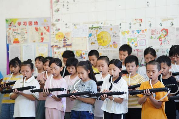 “这是我今年第二次到和东小学教孩子们口风琴。”广工参与授课的董一凡同学说,自从加入美育浸润行动计划,见证乡村孩子们一天天进步,这种感觉“很带劲”!