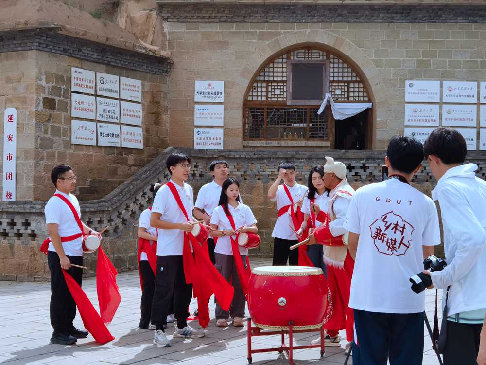 图|实践团师生学习安塞腰鼓、拍摄思政精品课素材