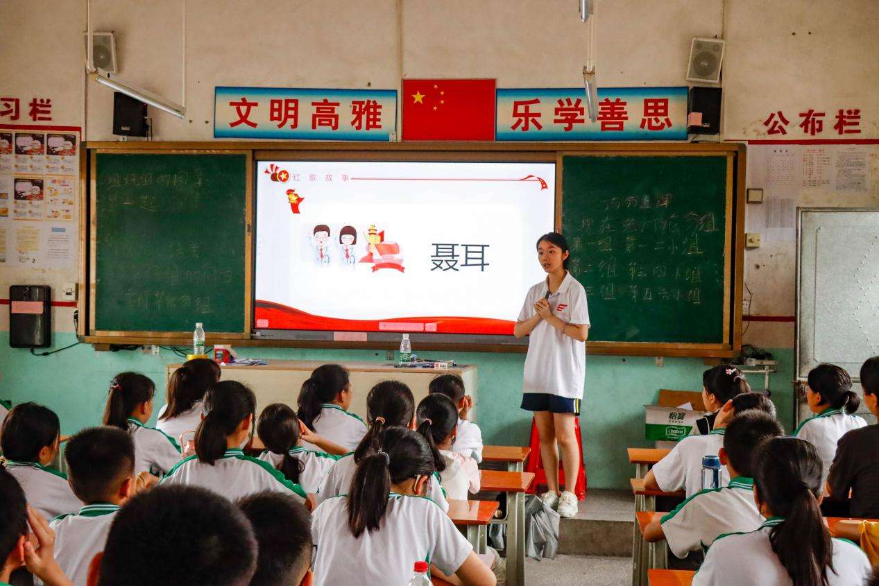 在活动初期,孩子们就对即将到来的红色音乐课表现出了极大的热情。支教队员谭怡君感慨道:“同学们知道我是音乐老师后,每天都会有同学问小谭老师什么时候上音乐课啊?我们上音乐课唱什么啊?好想快点上音乐课啊。”