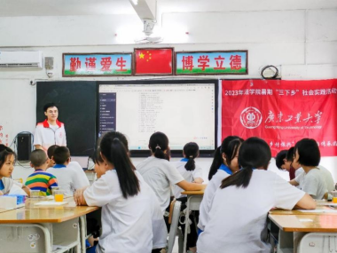 队员胡素香紧接着向孩子们科普乡村教育的数字化转型。“如今,在线教育网站和教学APP辅助预习、复习。”胡素香说,“我们实践队的学生很多也都是从大山里走出来,所以我们希望将掌握到的‘数字’技能传递回给家长和大山的孩子,让他们能有更多的机会获取优质的教学资源。”