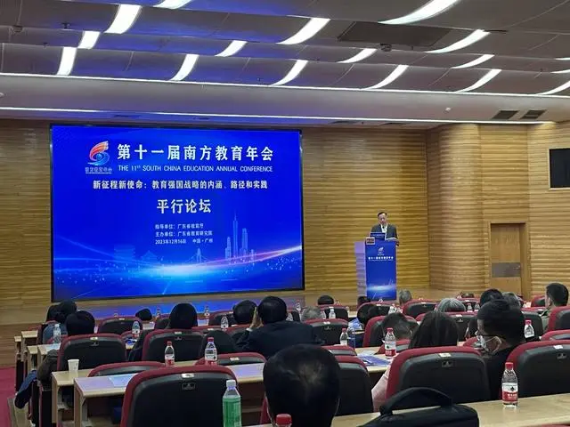 12月16日,由广东省教育厅指导、广东省教育研究院主办的第十一届南方教育年会在广州召开。广东省委常委、省政府副省长王曦出席开幕式并致辞。中国高等教育学会会长,教育部原党组副书记、副部长杜玉波作主旨演讲《教育强国的内涵和实践路径》。近20位全国知名专家、学者围绕“新征程新使命:教育强国战略的内涵、路径和实践”主题,进行演讲交流。中共广东省委教育工委书记、广东省教育厅党组书记、厅长朱孔军主持开幕式。