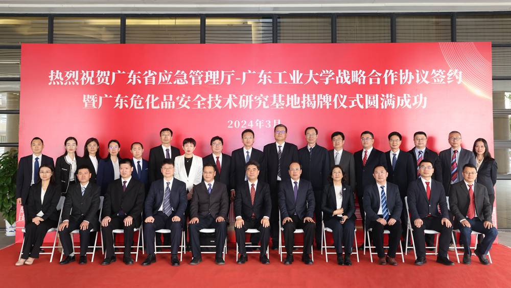 学校发展规划处、科学研究管理部、研究生院、人事处、机电工程学院、自动化学院、轻工化工学院、土木与交通工程学院、材料与能源学院、环境科学与工程学院、生态环境与资源学院,广东省应急管理厅规划财务处、危险化学品安全监管处、科技和信息化处、人事教育处,省安全生产科学技术研究院等相关负责同志参加仪式。