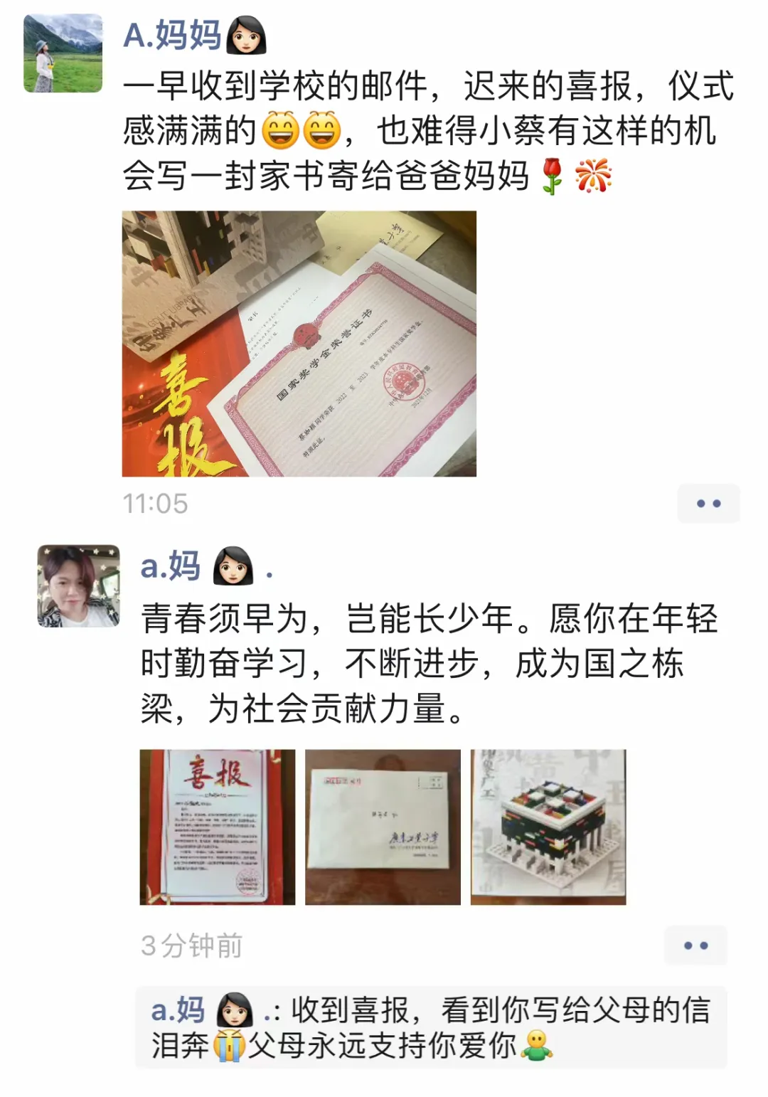 获奖喜报、奖学金证书、学子家书