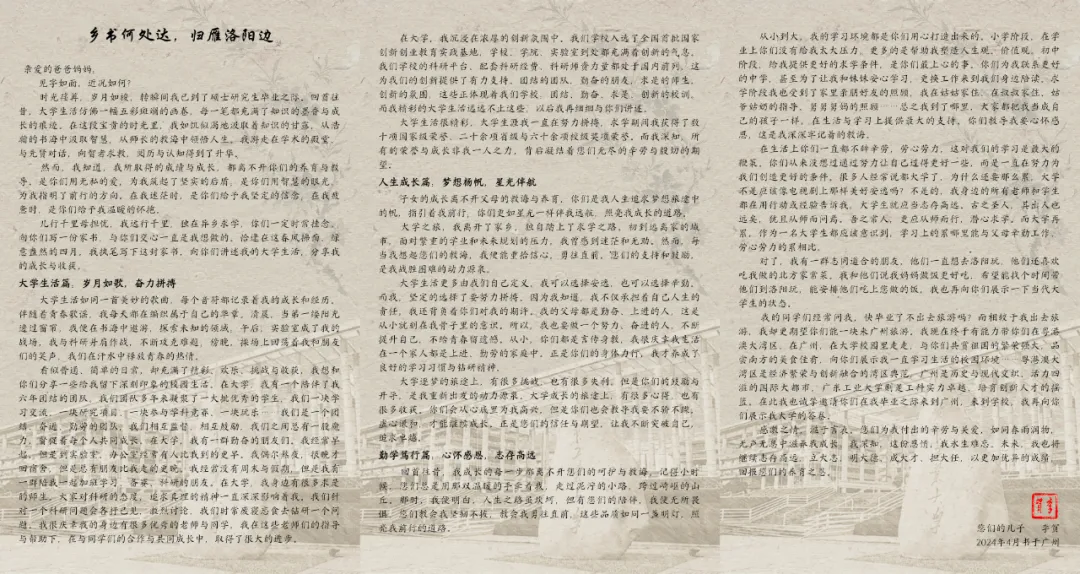 向父母汇报了自己的求学收获